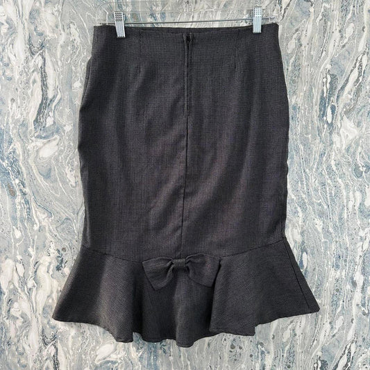 Vintage WAWA Black Charcoal Ruffle Hem Pencil Skirt with Bow Detail (M)