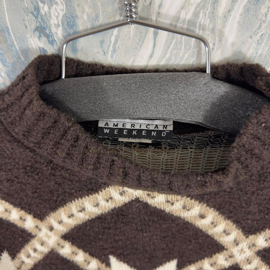 Vintage Tan & Brown Preppy Patterned Knit Winter Christmas Snowflake Sweater (M)