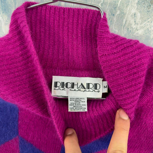 Vintage Wool Pink & Purple Geometric Knit Sweater (M)