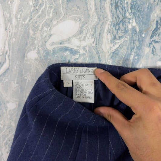 Vintage Larry Levine Classic Navy Pinstripe Pencil Skirt (6)