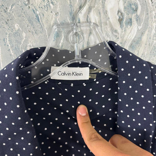 Calvin Klein Navy Polka Dot Long Sleeve Wrap Dress (12)