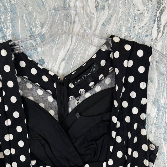 Classic Polka Dot Black & White Sleeveless Fit and Flare Dress (L)