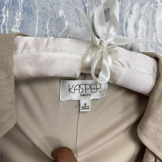 Kasper Preppy Tan Ruffled Sleeveless Dress (8)