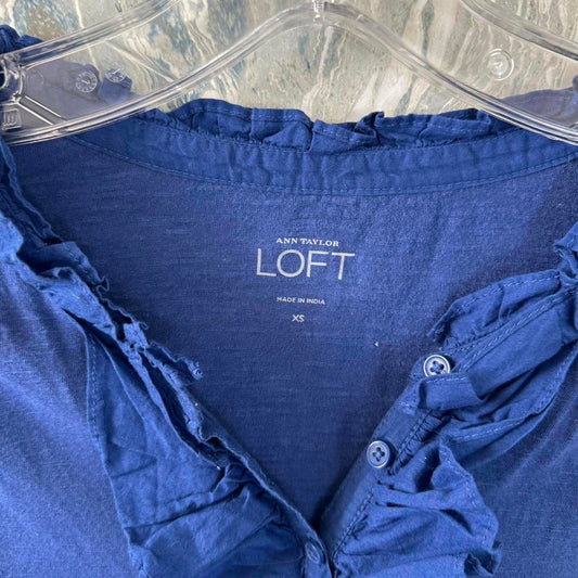 Y2K Ann Taylor LOFT Ruffle Trim Blue Long Sleeve Cotton Top (XS)