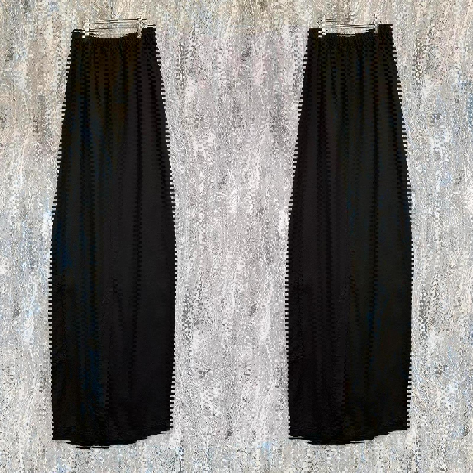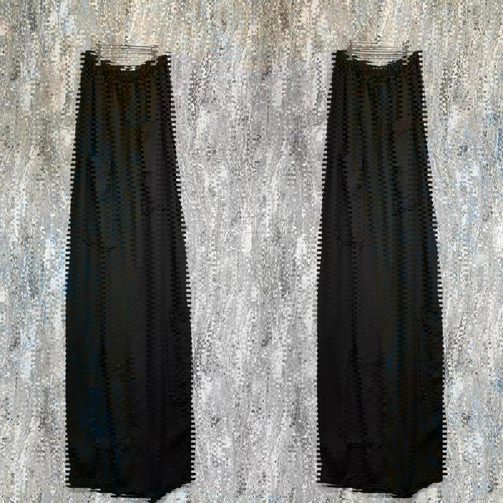 Flowy black maxi skirt with multiple front pockets and an elastic waistband. #maxiskirt #boho #grunge #goth #minimalist