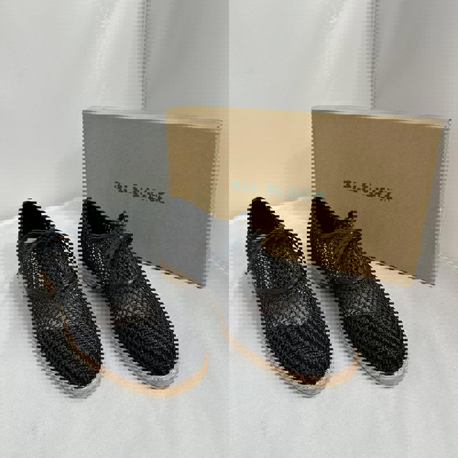 These oxfords feature a distinctive black mesh design with lace-up detailing and a wooden style sole for a modern touch.