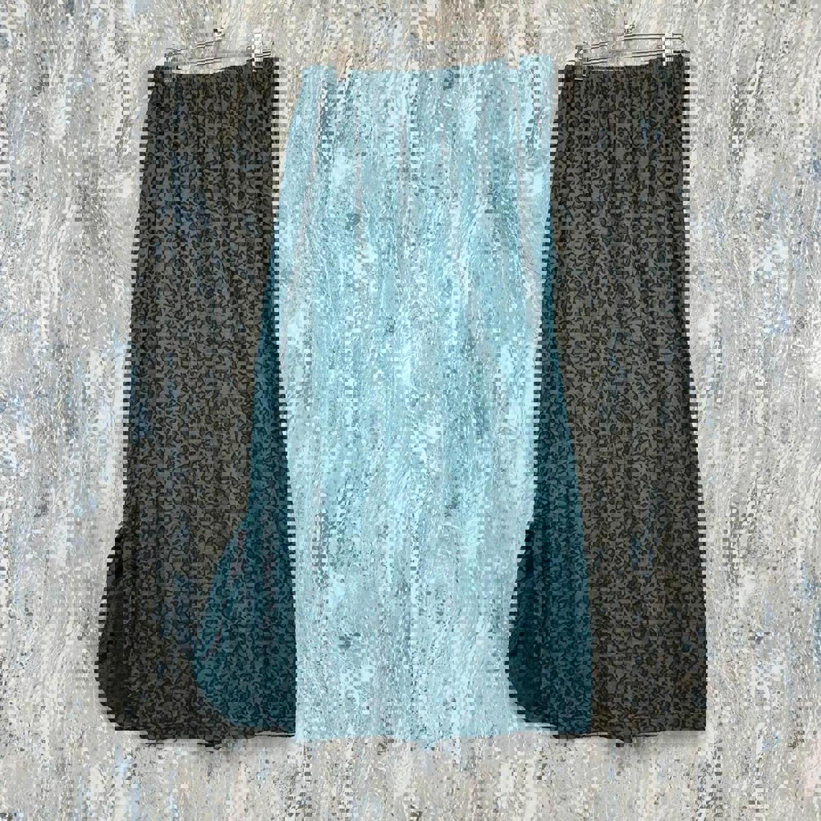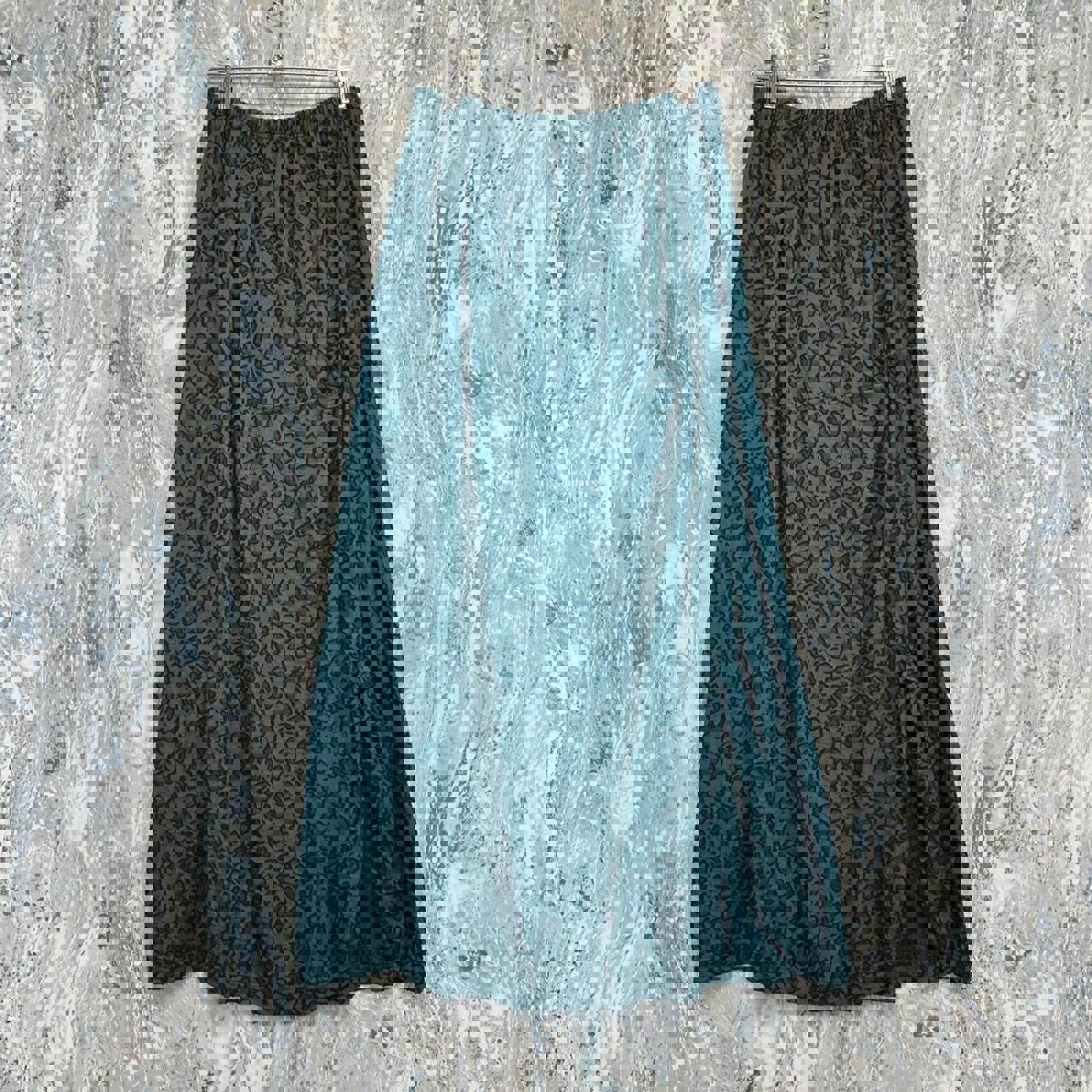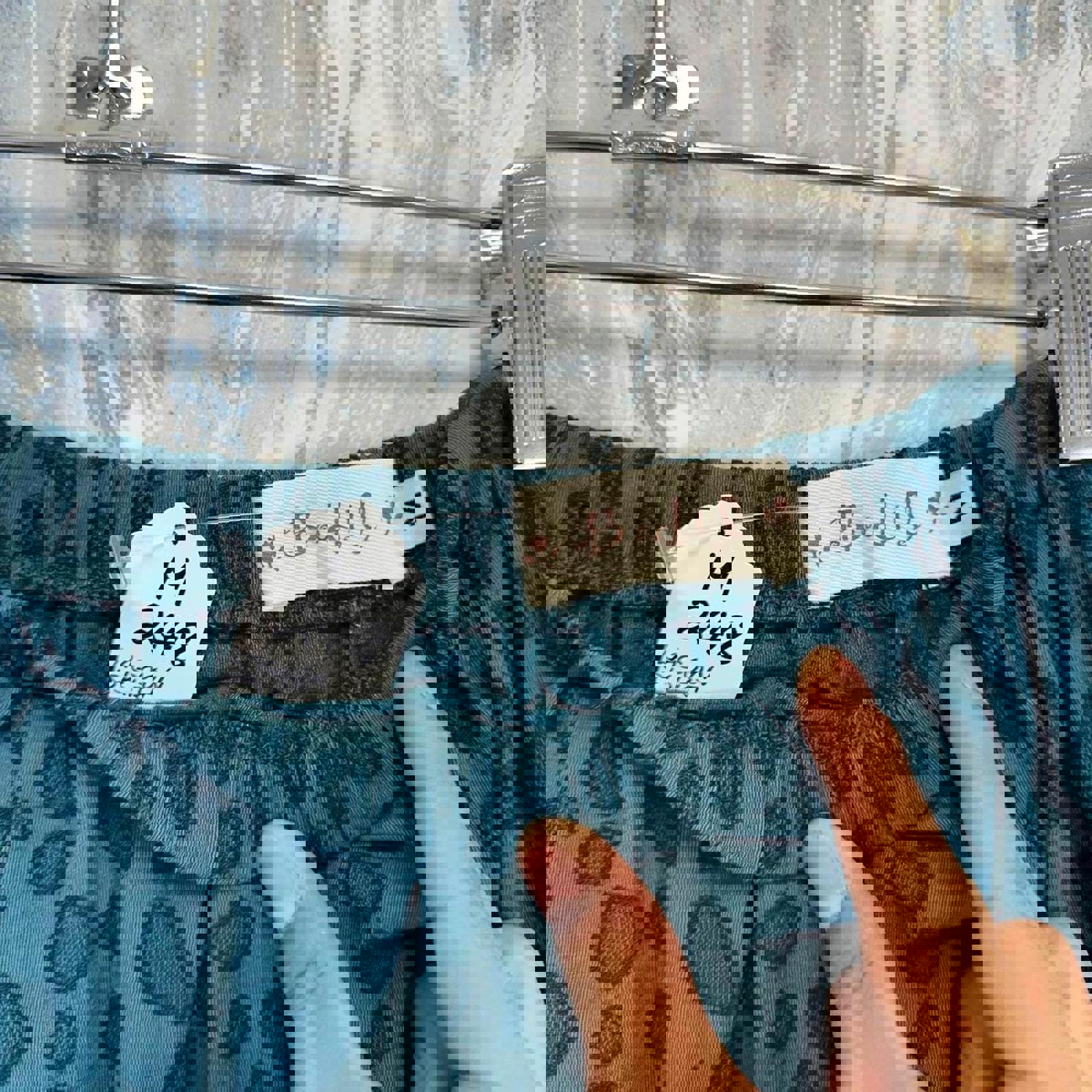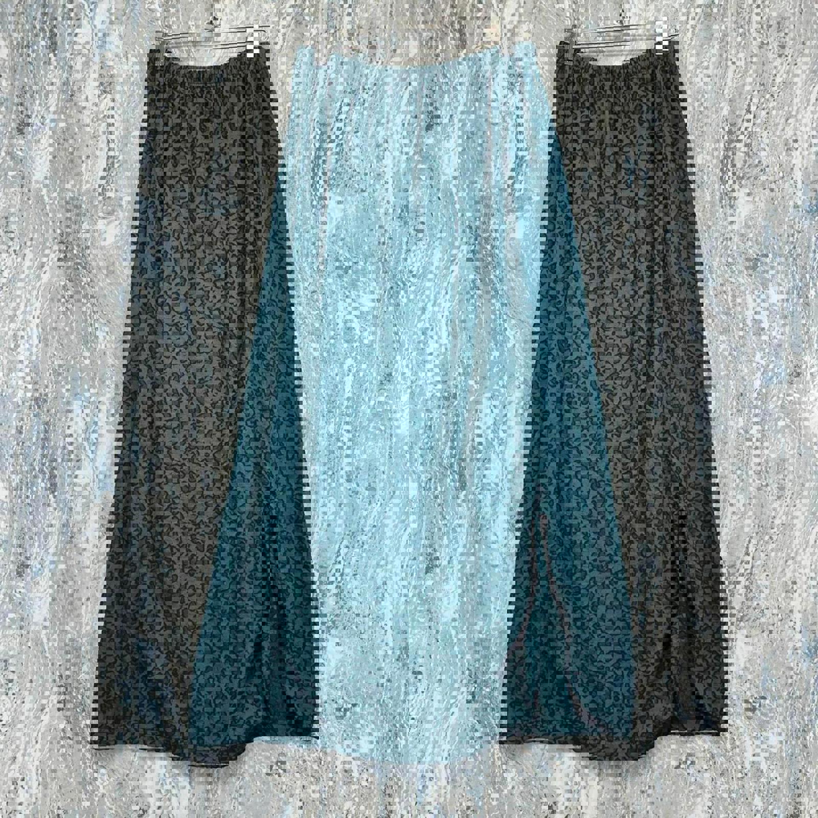Teal leopard print maxi skirt featuring a subtle side slit and elastic waistband. #vintage #skirt #minimalist #indie #boho