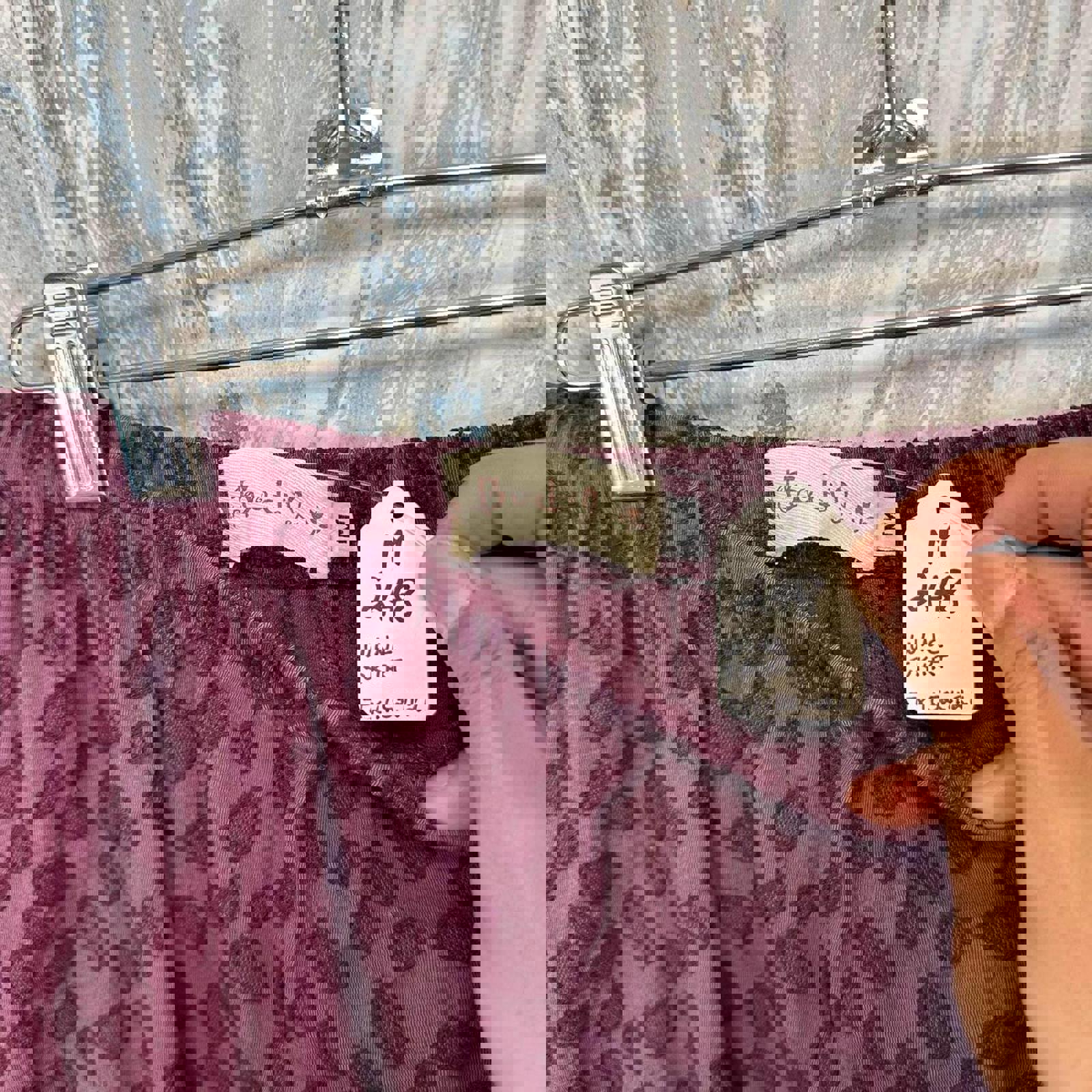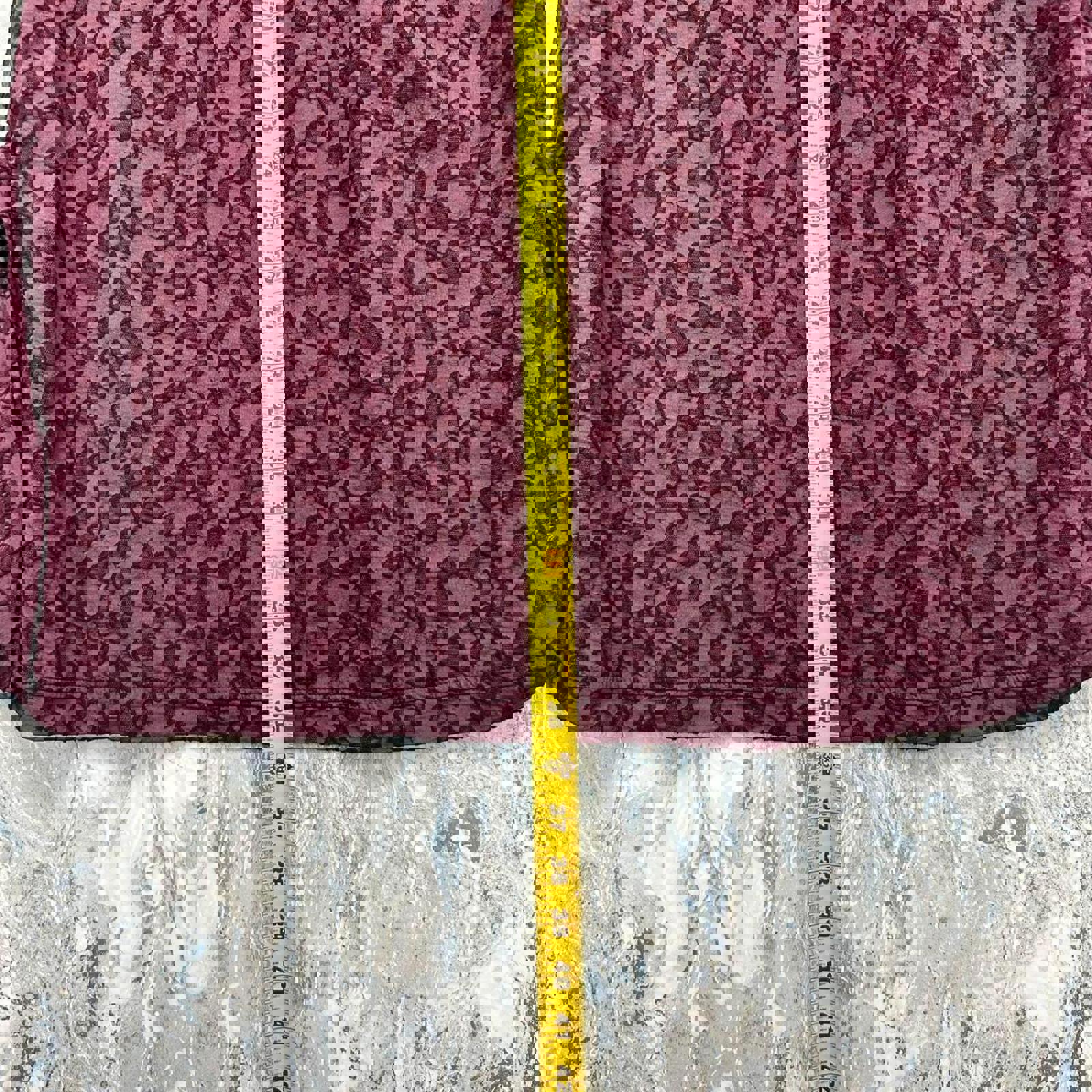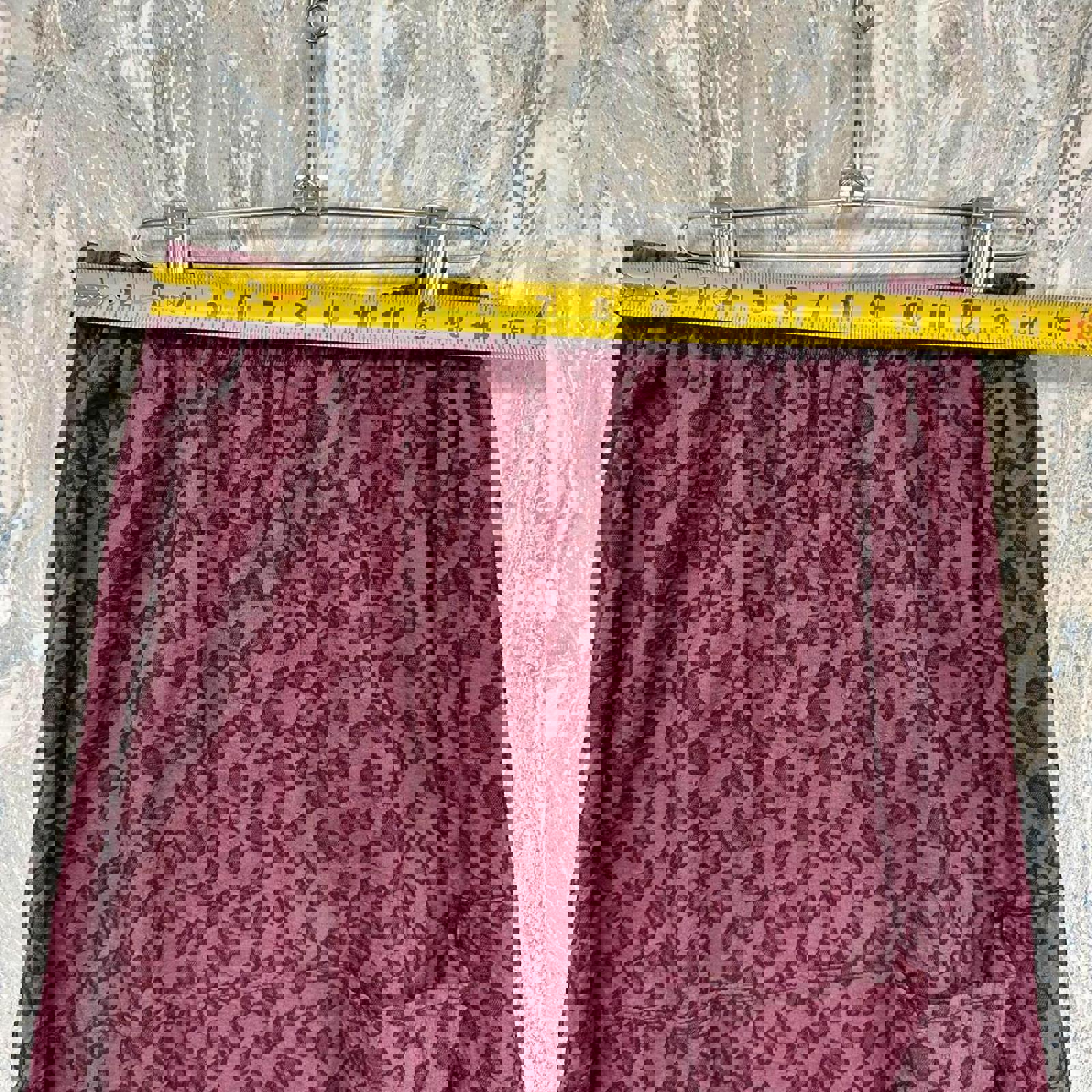 Casual midi skirt in a wine color with a subtle leaf pattern.