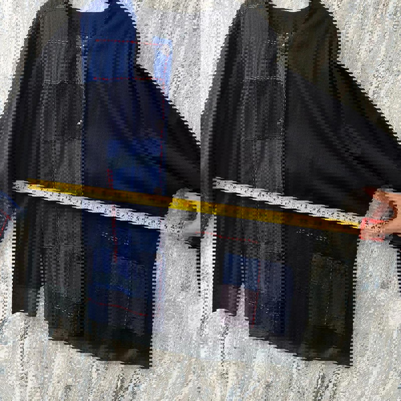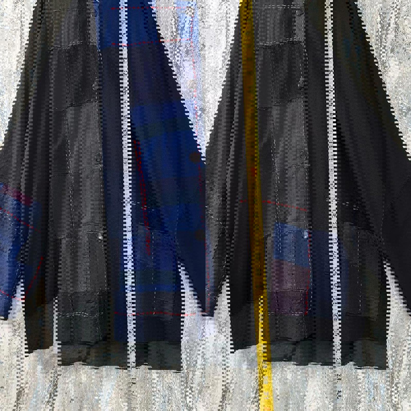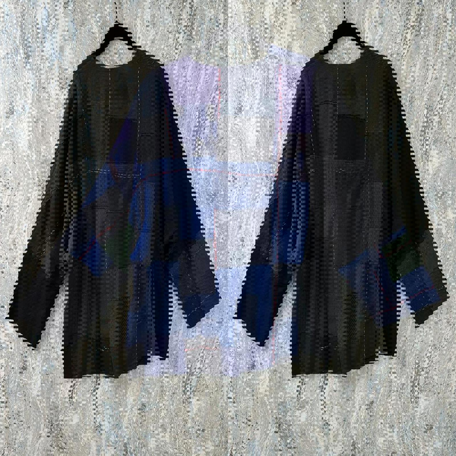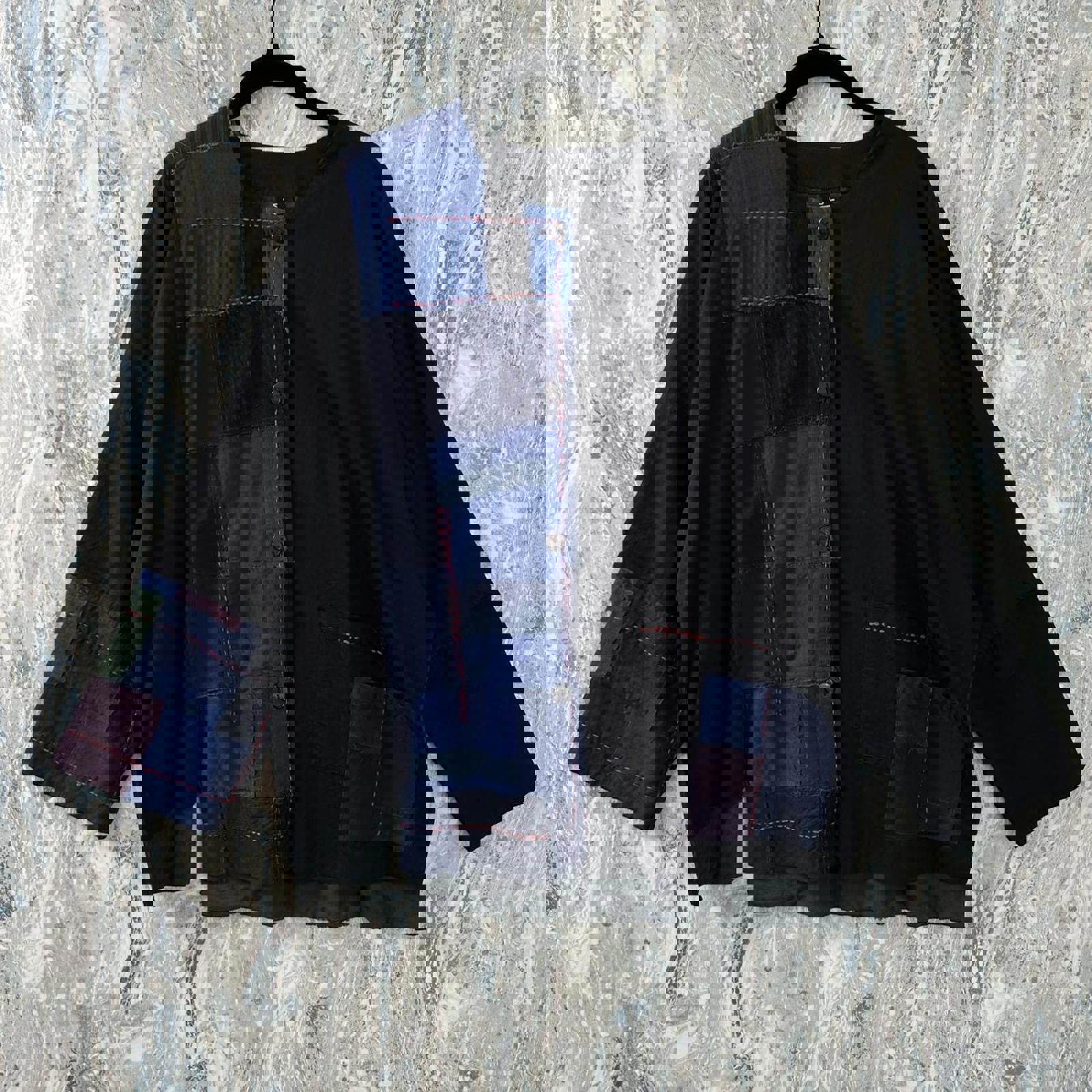 Boho Black & Blue Patchwork Button-Up Jacket (S/M)