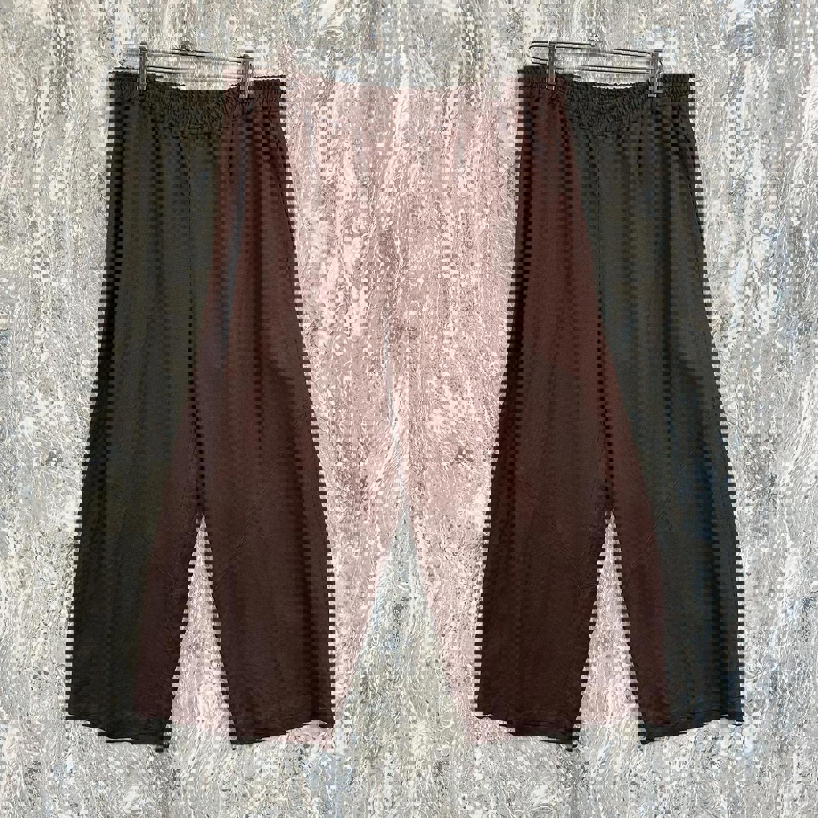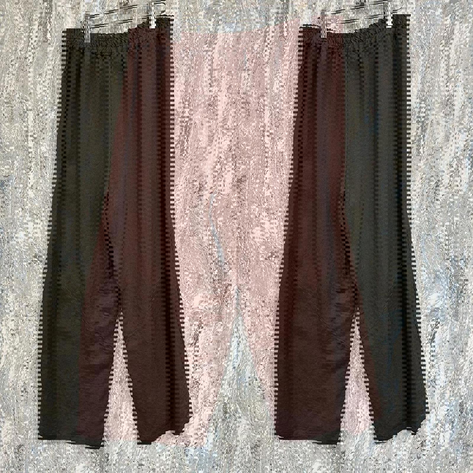 Taravao women's size large brown wide leg pants with elastic waistband, brand new with tags, exact measurements in photos