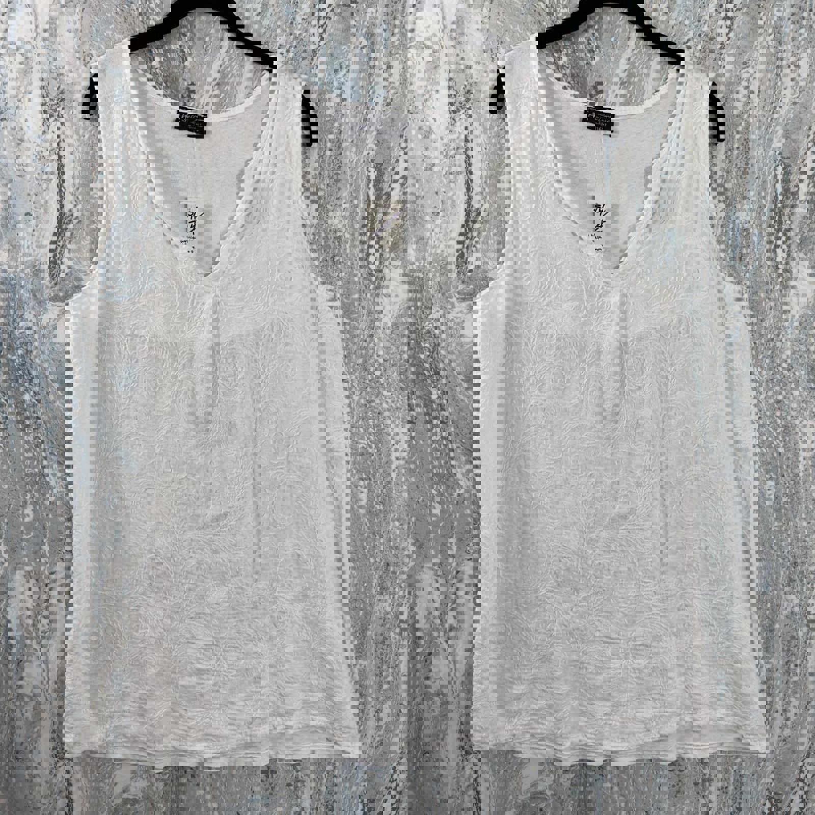 Boho Designer White Embroidered Tank Top (S/M)