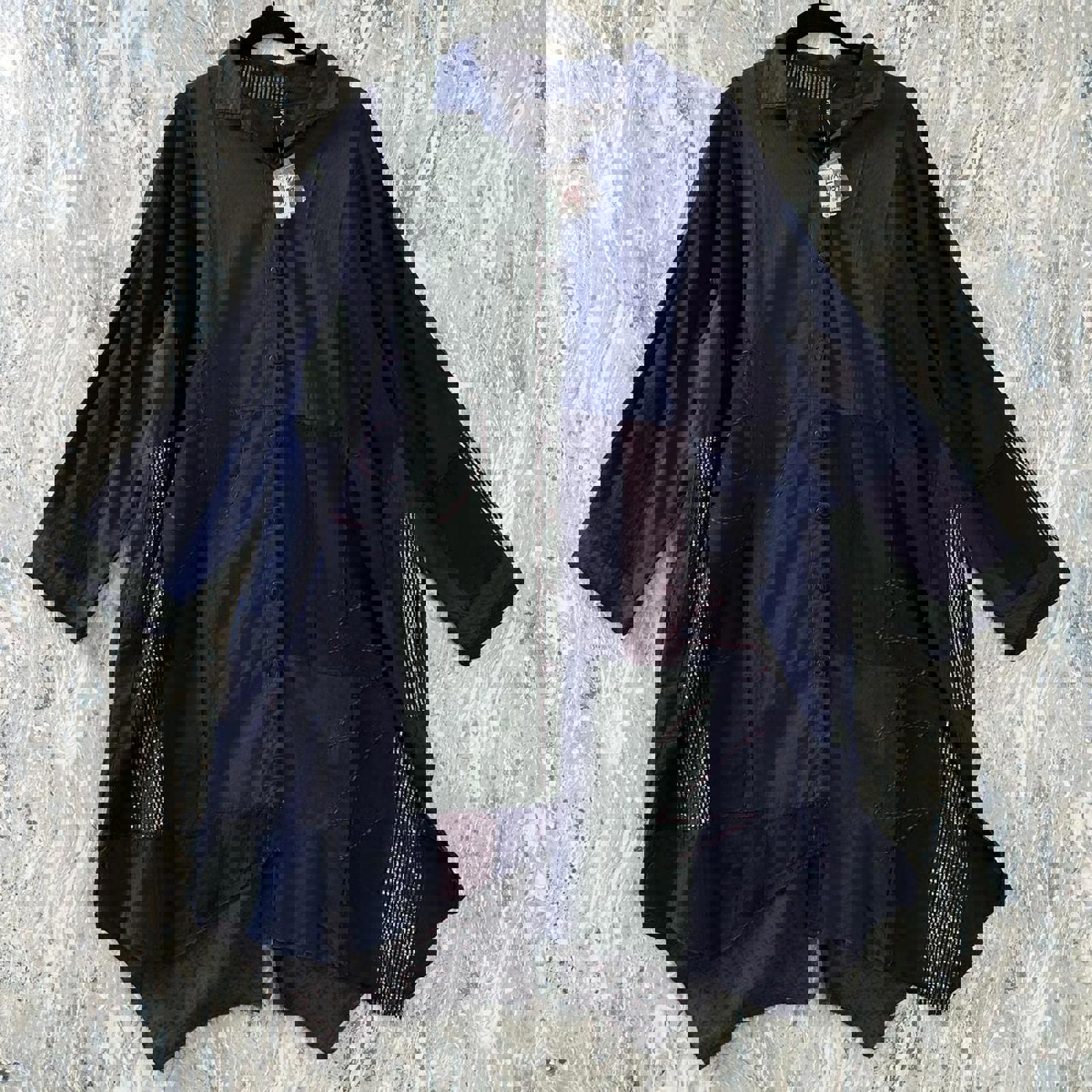 Boho Patchwork Button-Up Tunic Shirt Dress (L/XL)