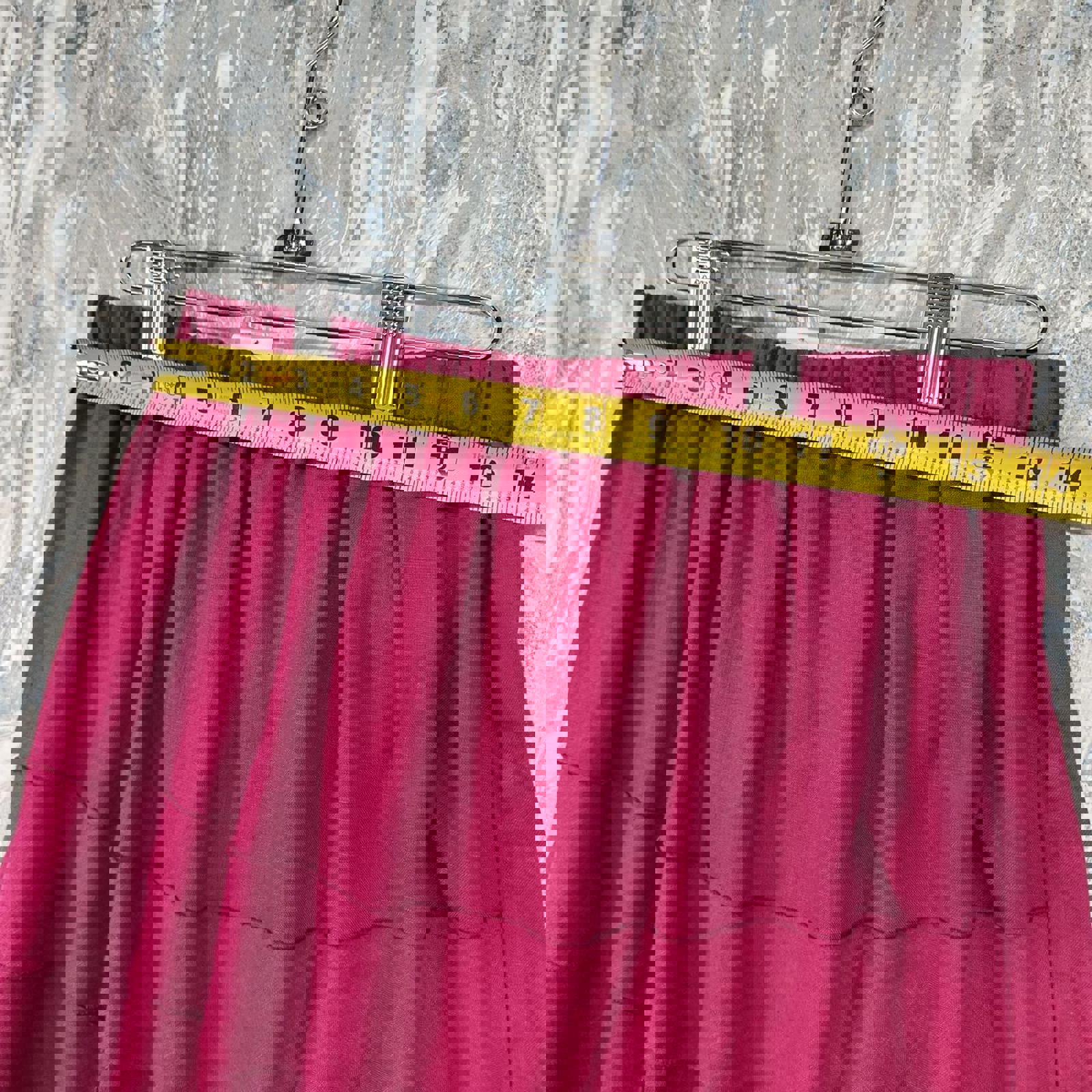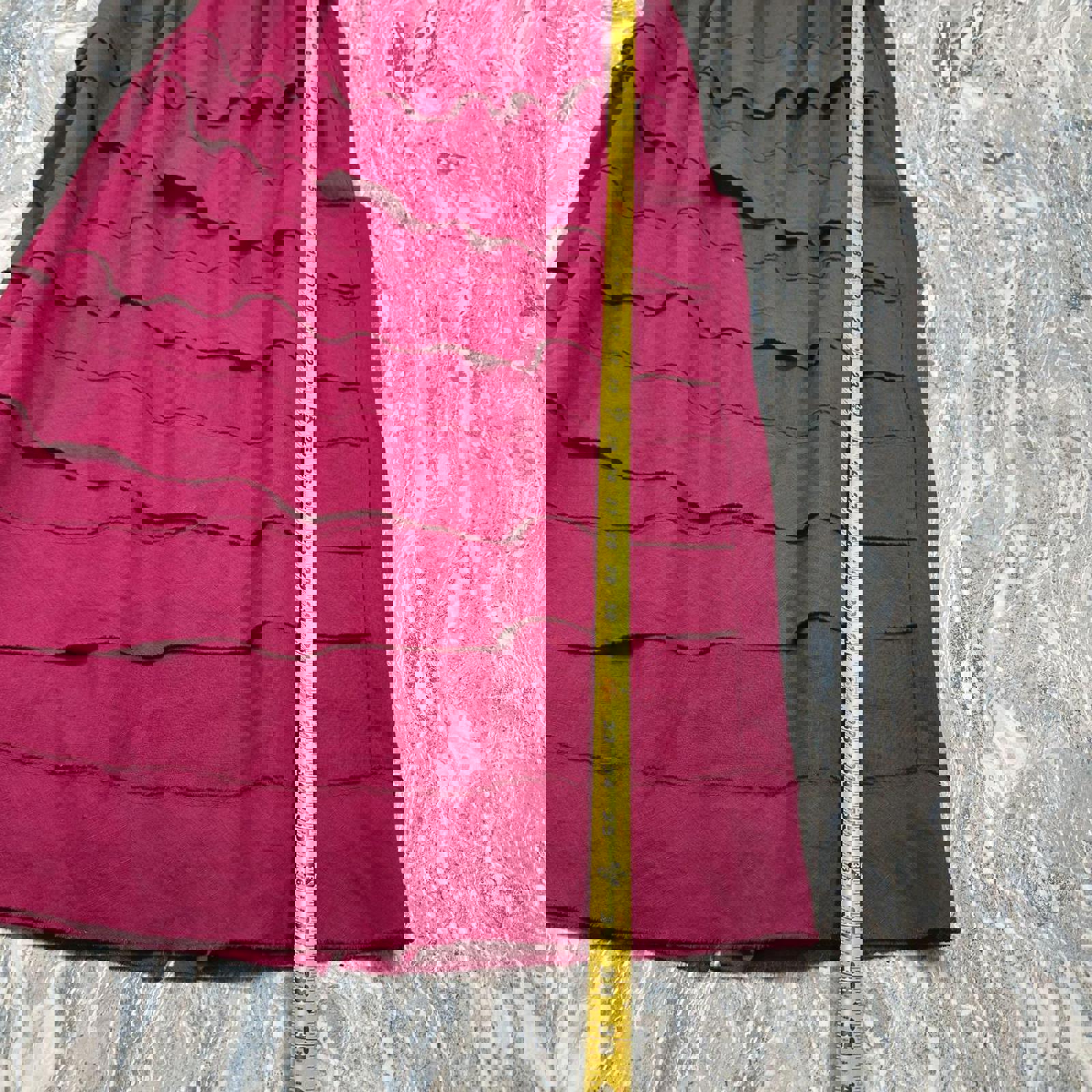 Chic magenta skirt featuring tiered layers with an elastic waistband for a comfortable fit.