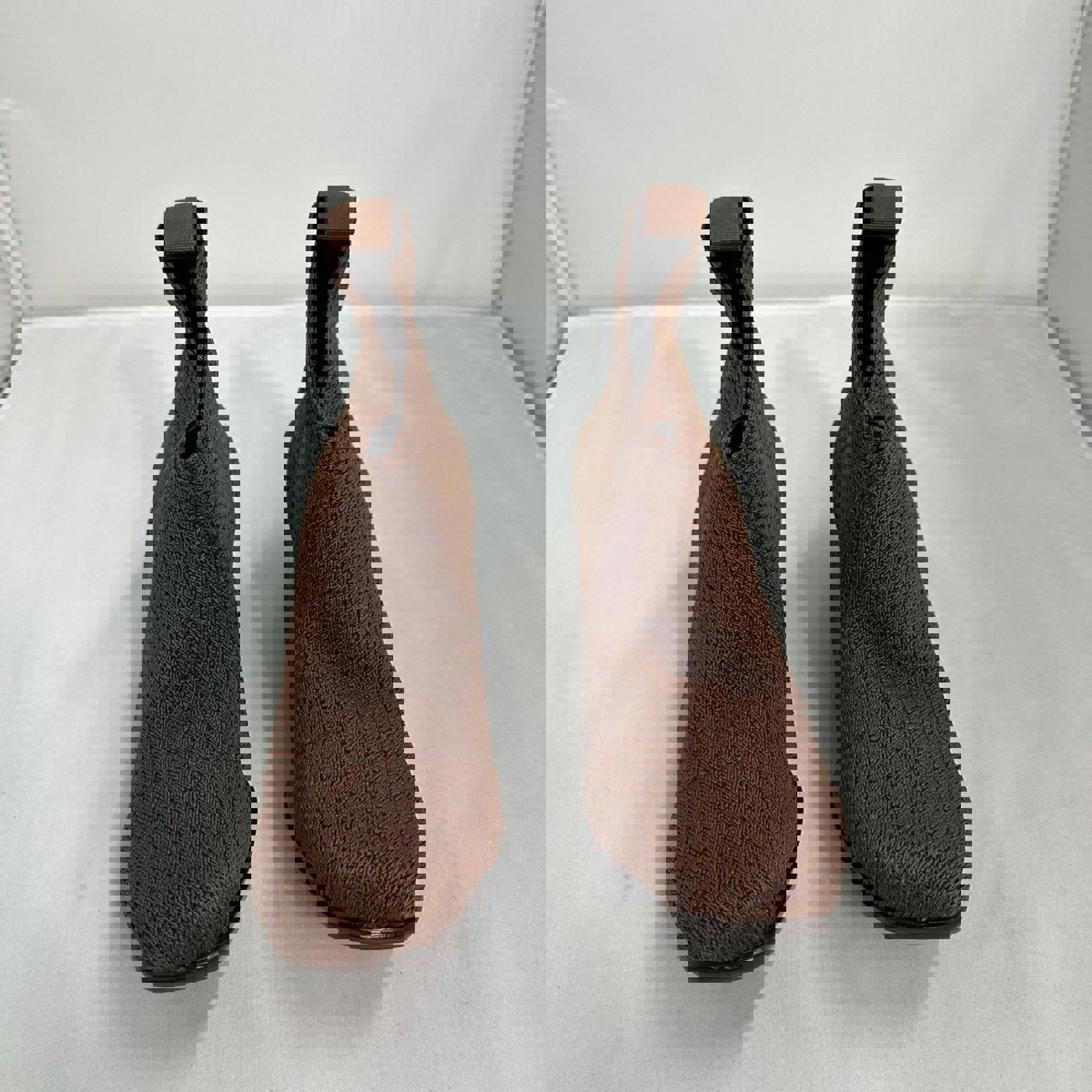 Rich brown ankle booties with a textured fabric finish and a low block heel for comfort and style.
