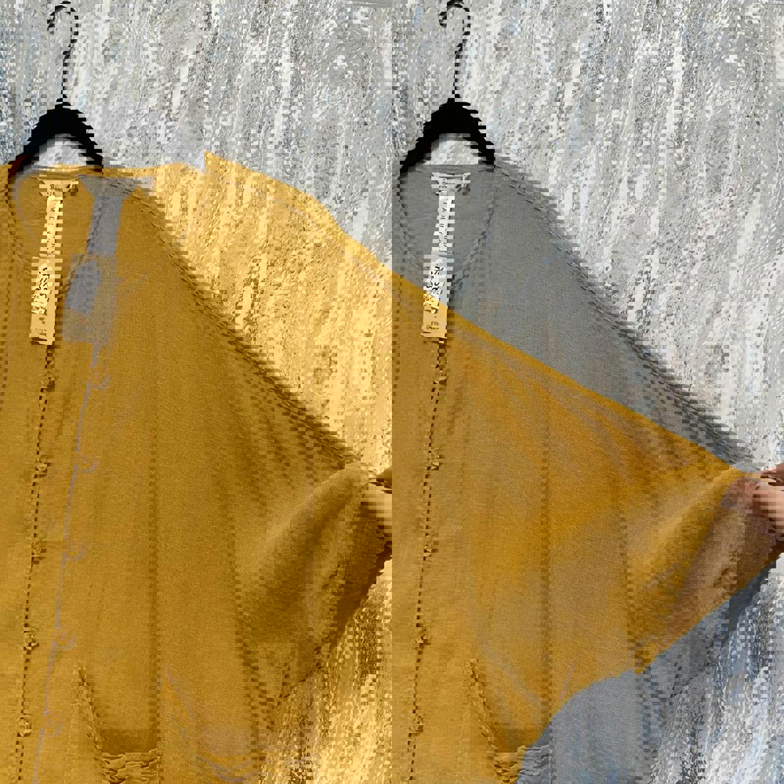Button-Up Mustard Yellow Linen Cardigan (S/M)