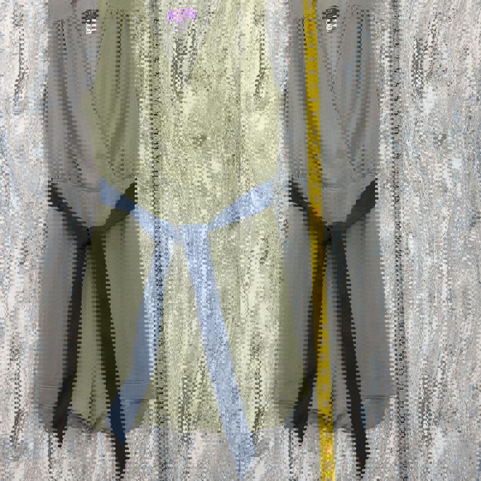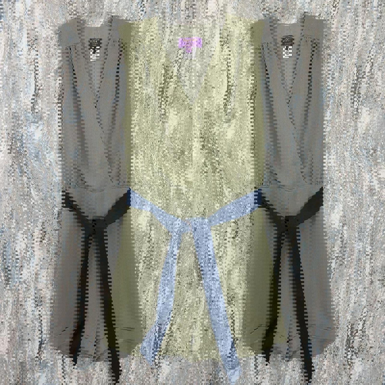 Chic Preppy Sage Wrap Romper with Navy Belt (XS)