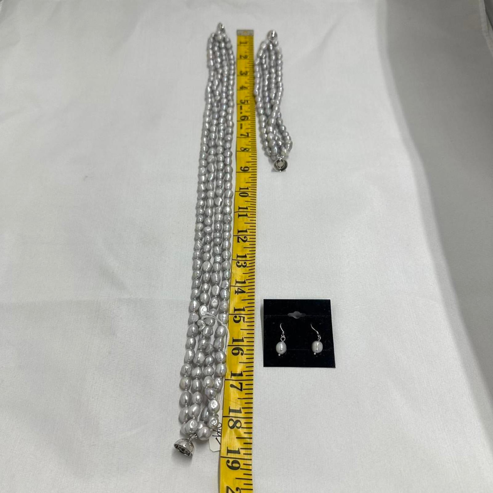 Classic Vintage Silver Pearl Multi-Strand Necklace Set