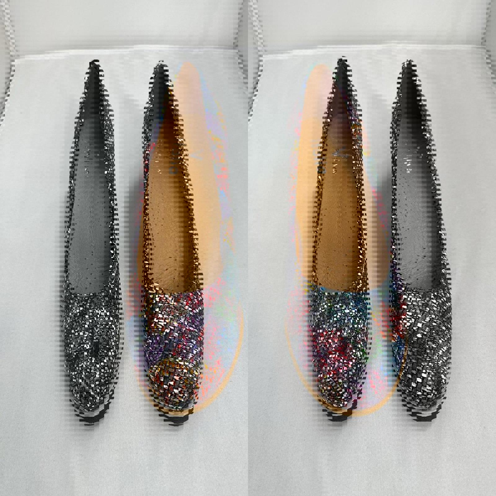 These shoes feature a vibrant woven pattern with a subtle wedge for added height and comfort.