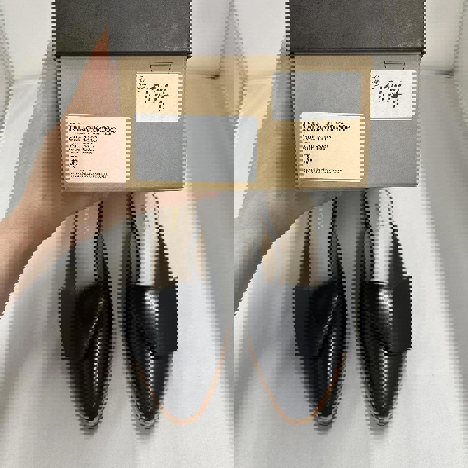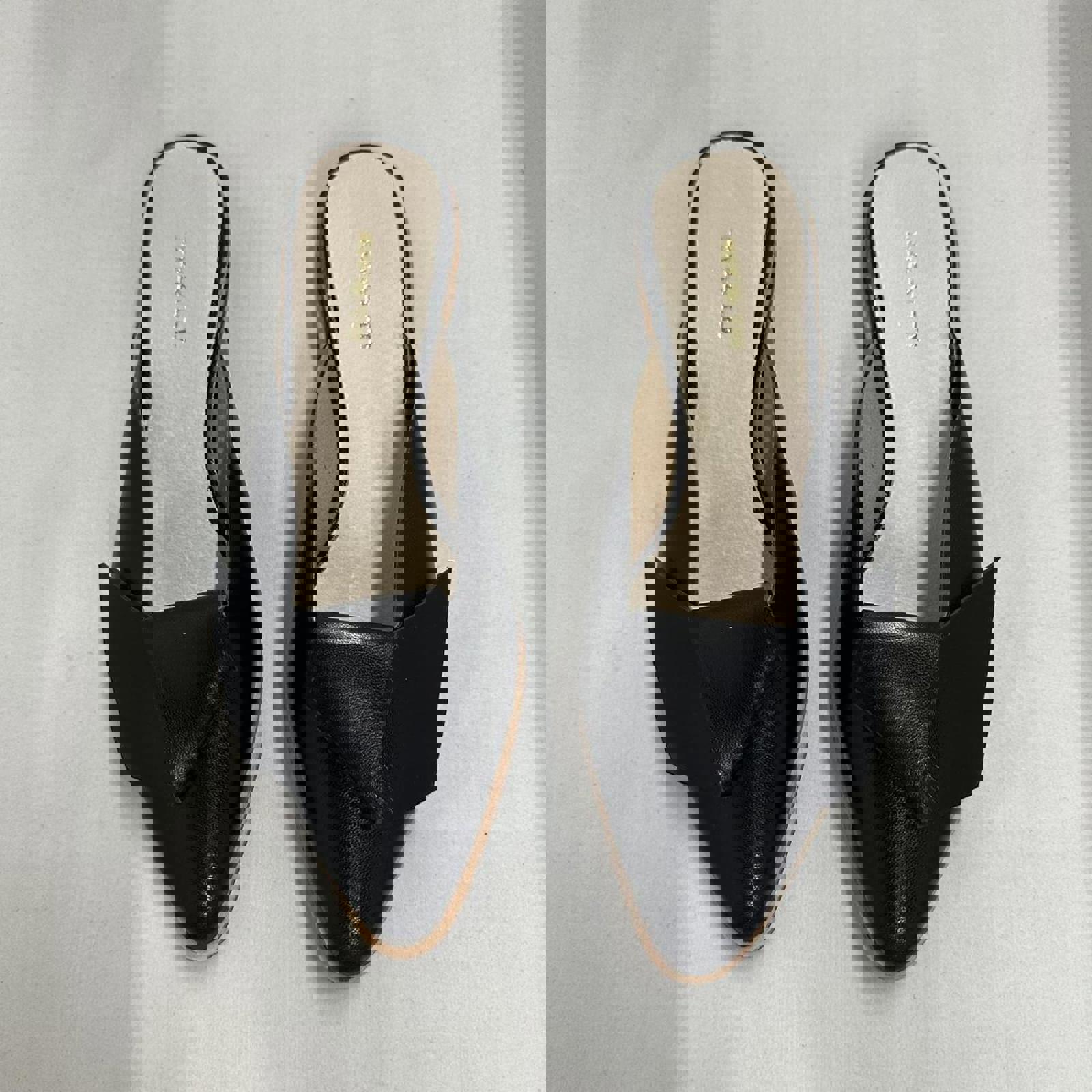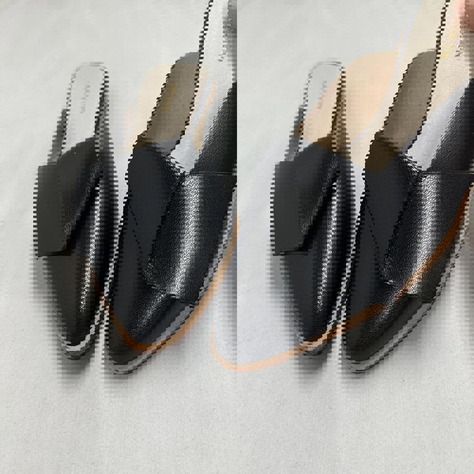 Contemporary Chic Black Leather Half Bow Mule Slides (5.5)