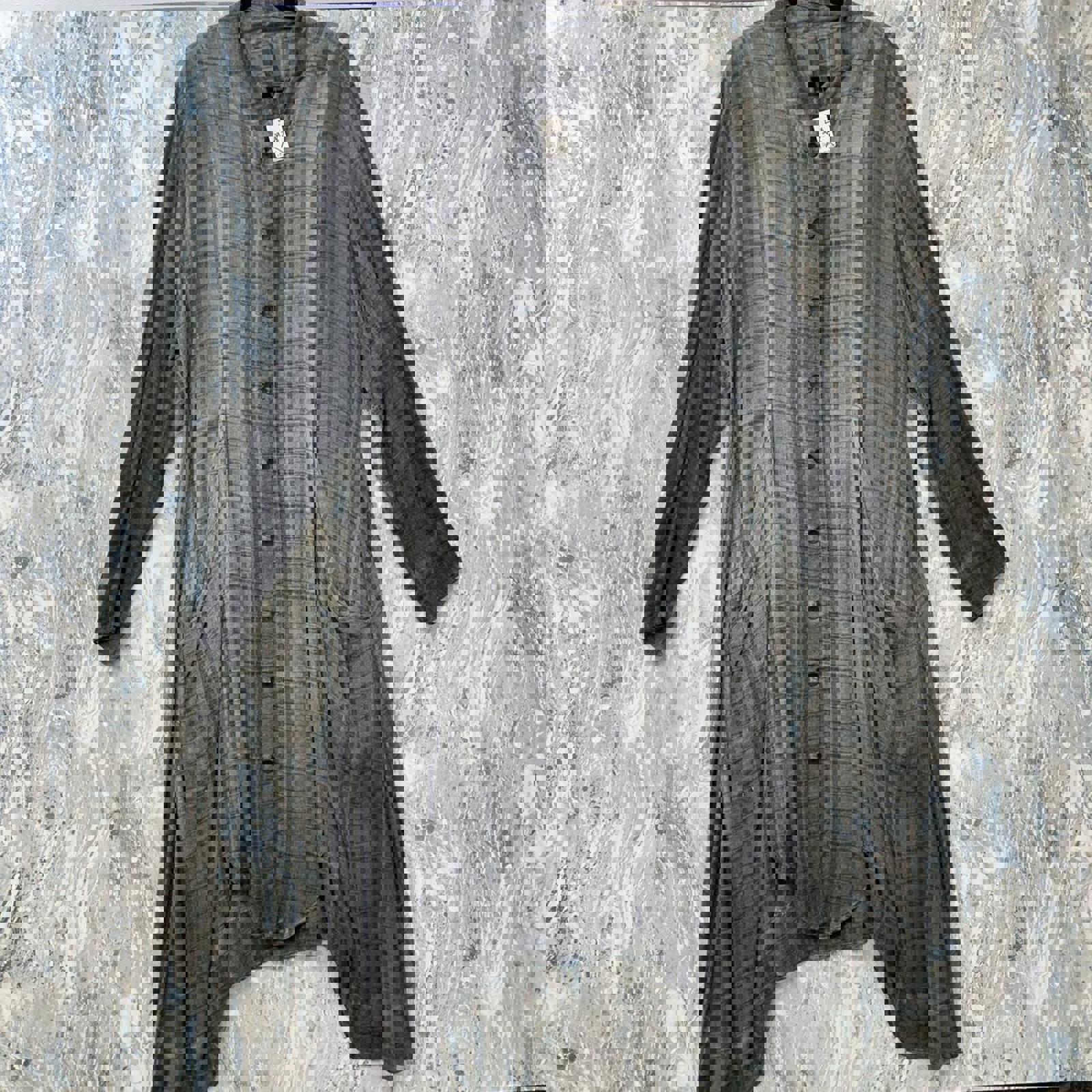 Cynthia Ashby Designer Grey Plaid Shirt Maxidress (L)