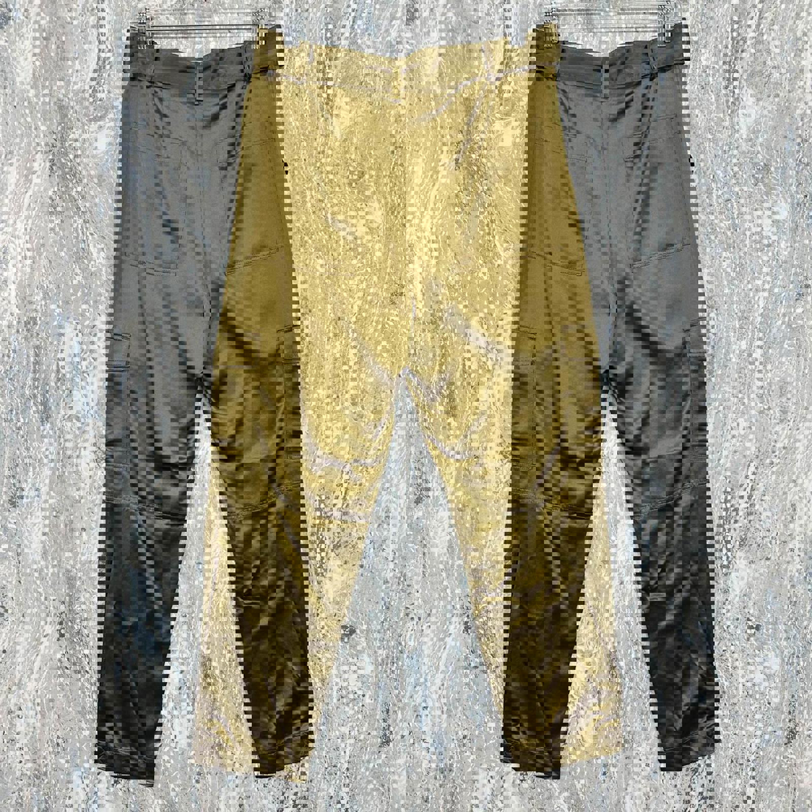 These dark hued golden cargo pants feature a stylish belted design with multiple pockets for a functional look. From Banana Republic 100% silk BNWT, $300 MSRP. Exact measurements in photos <3