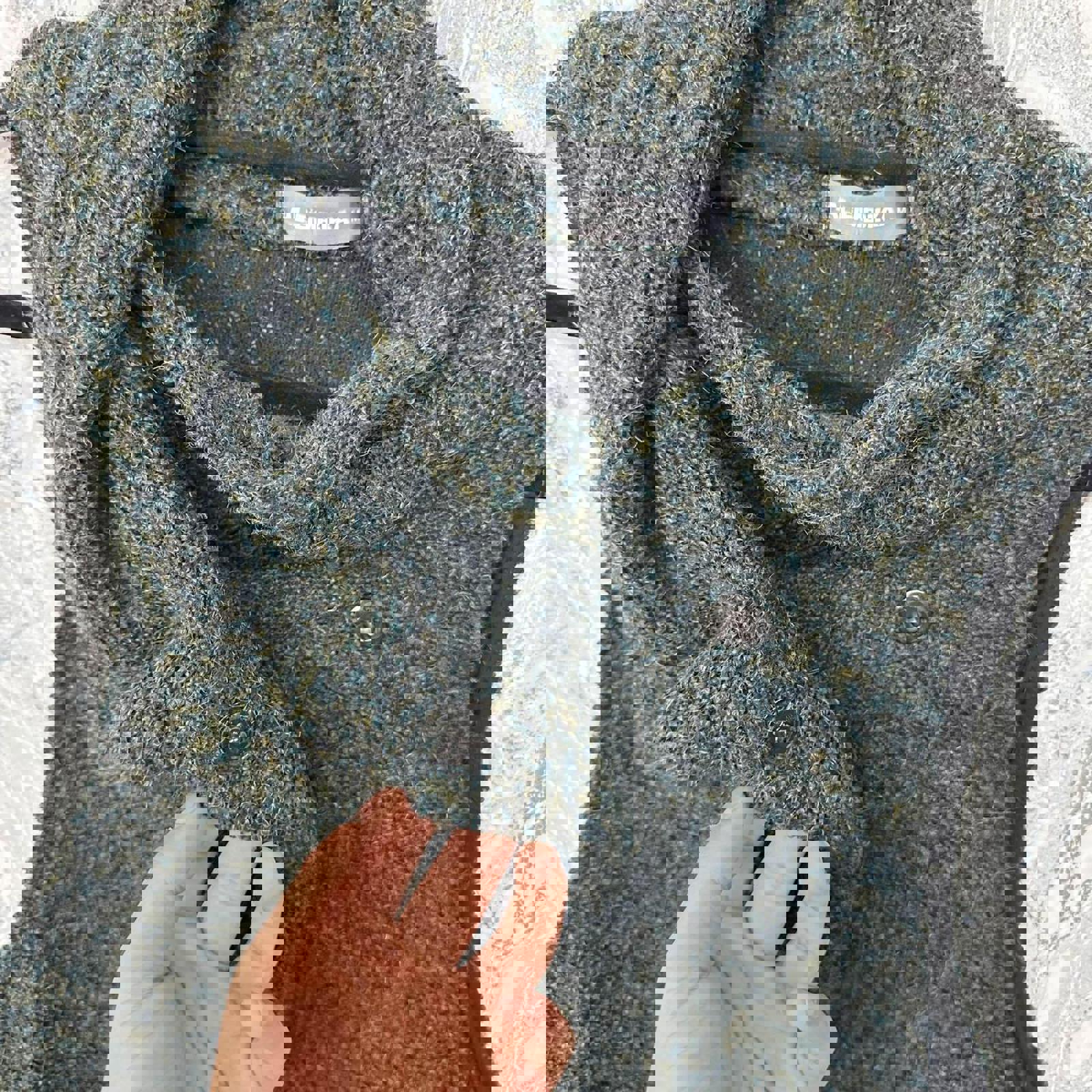 Cozy textured sleeveless vest in deep green with a draped collar design. Designer brand new with tags.