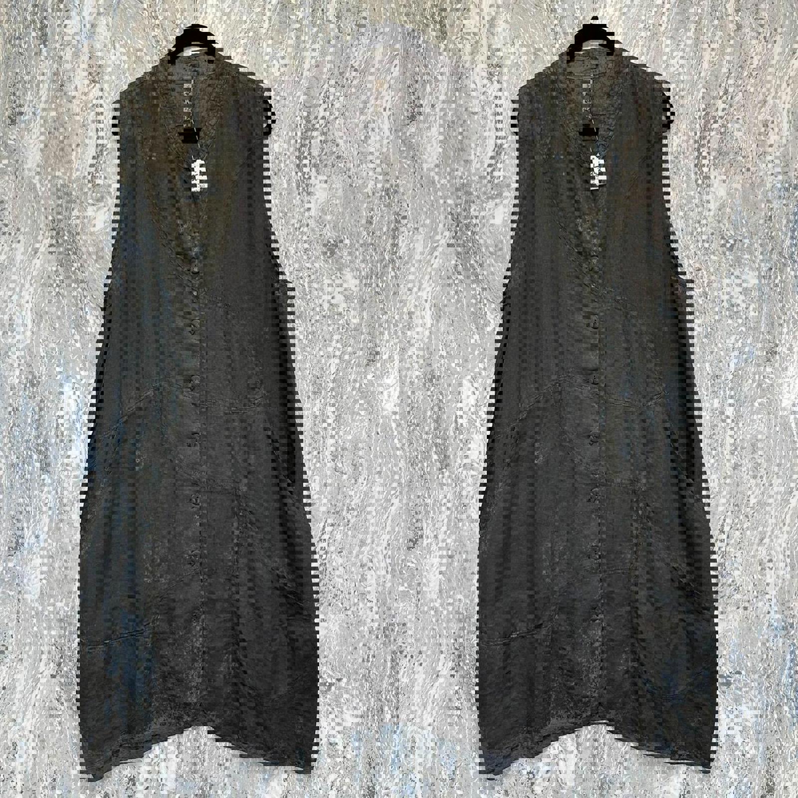 Dark Sleeveless Button-Up Linen Vest Dress (L)