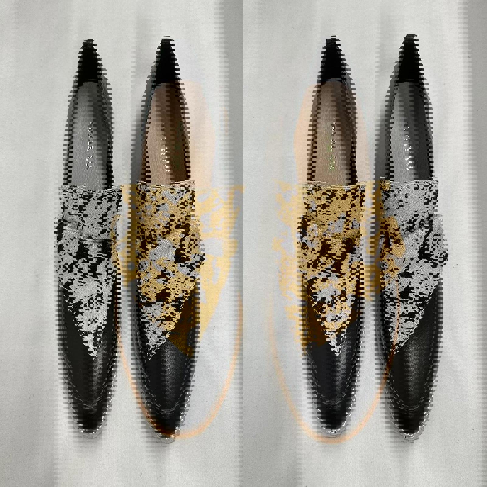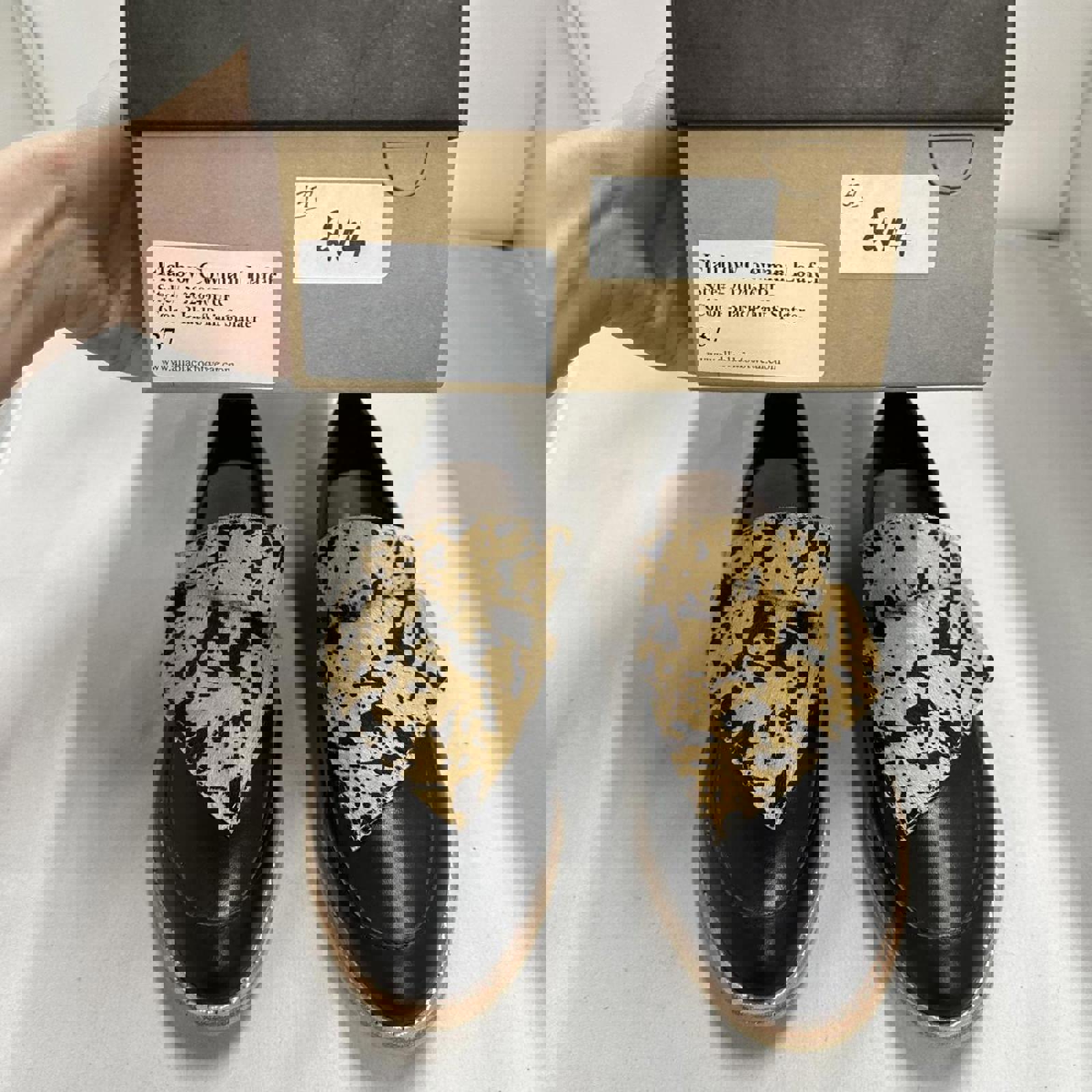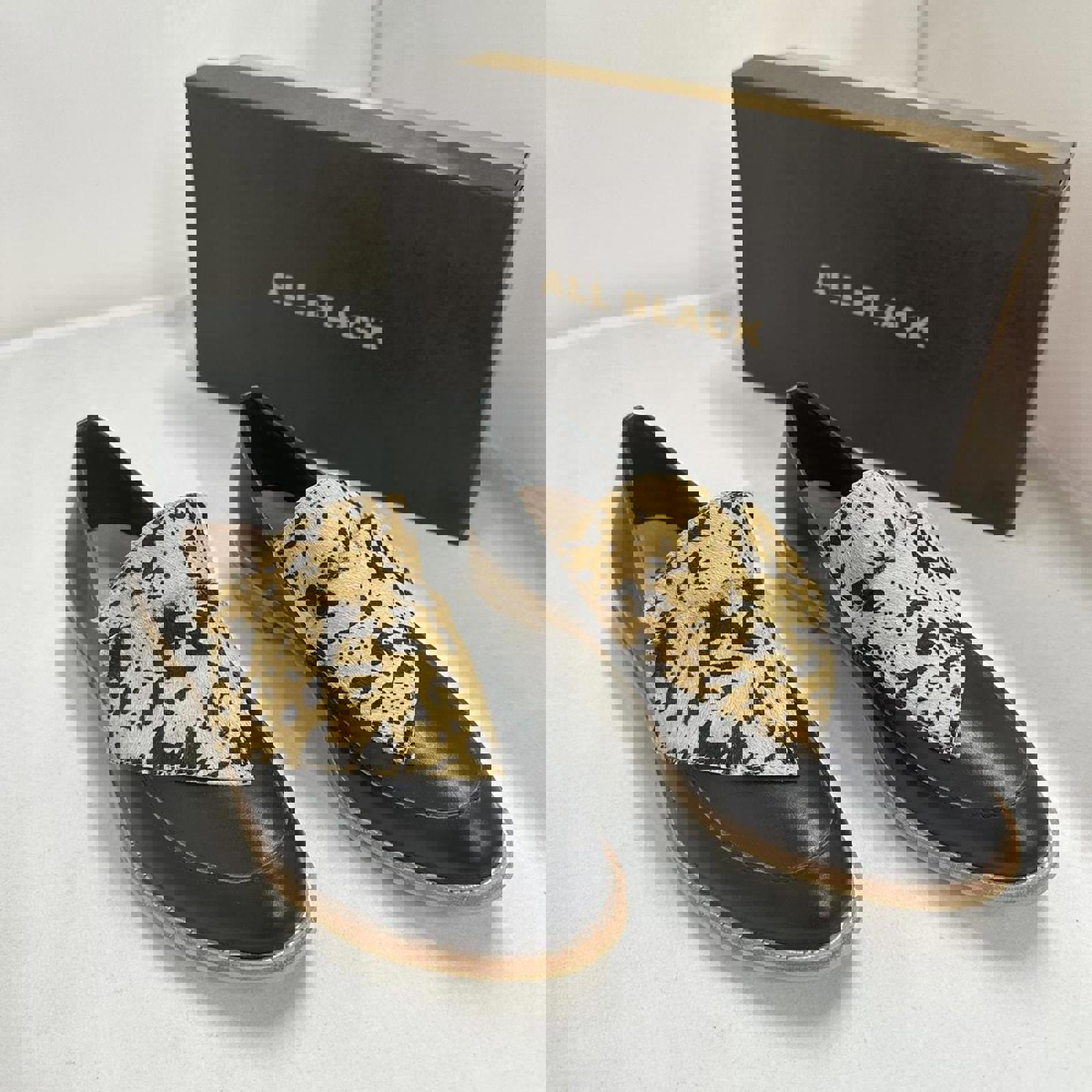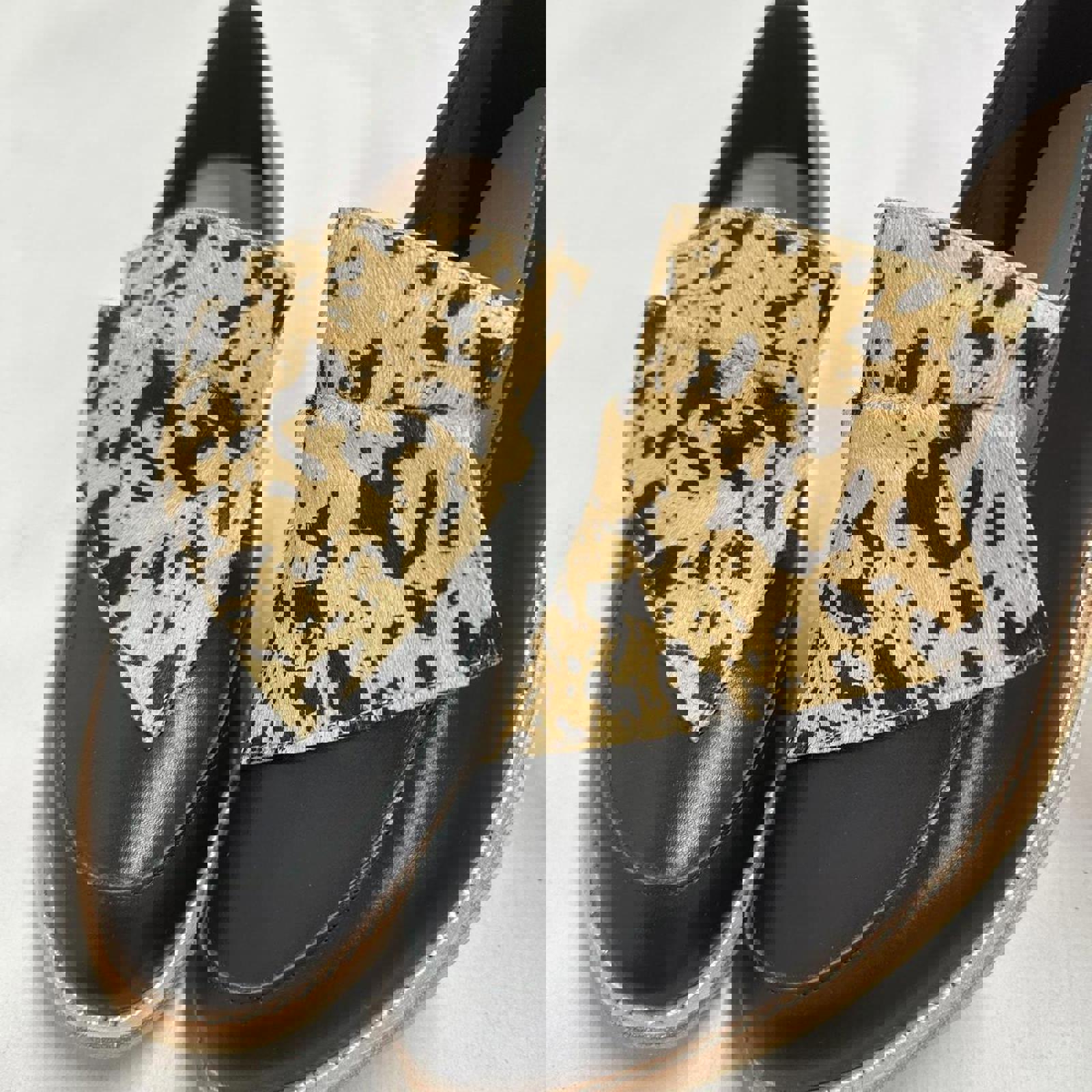 Designer Flat Bow Cowman Black Splatter Loafers (37)
