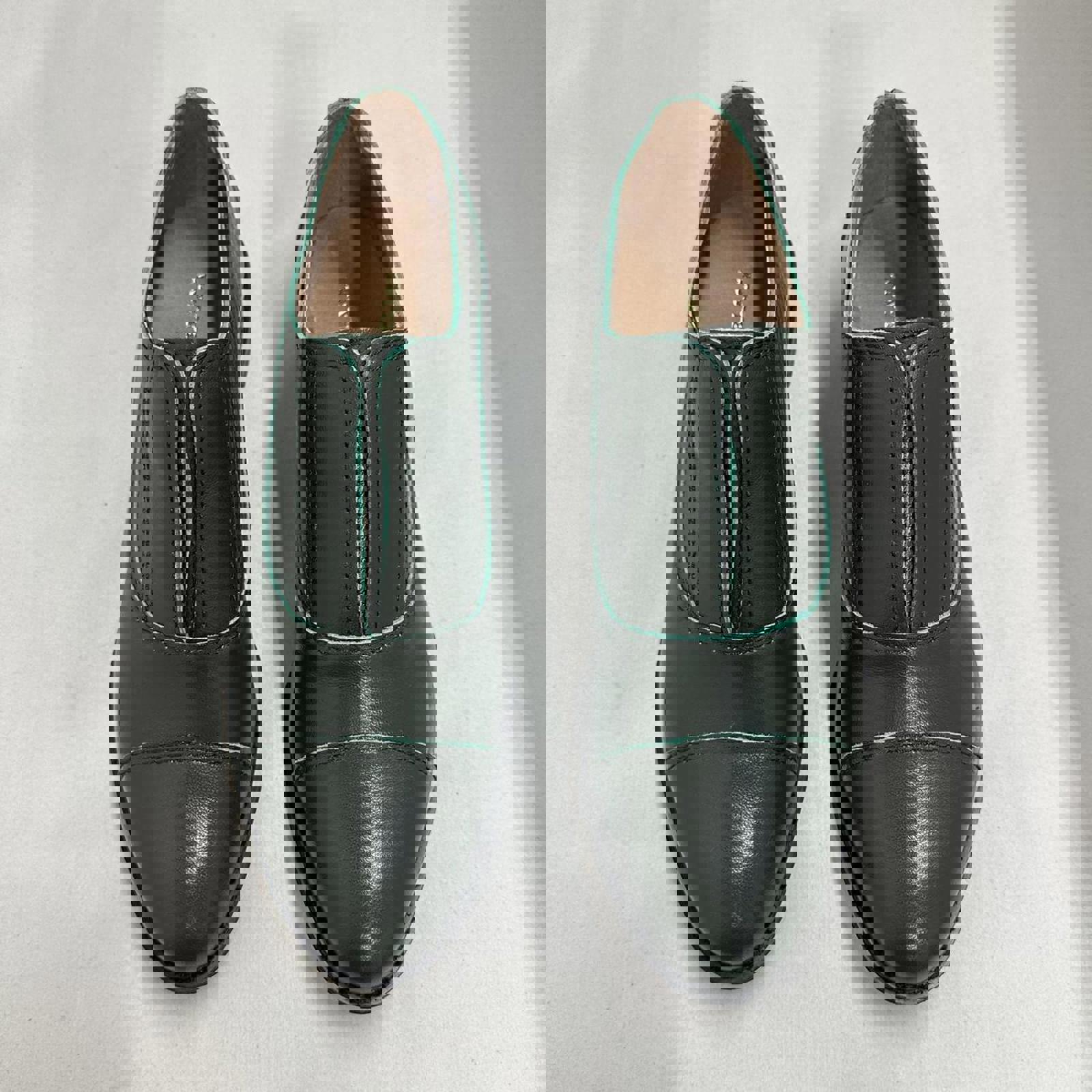 Designer Vintage Style Green Leather Shoes (38)