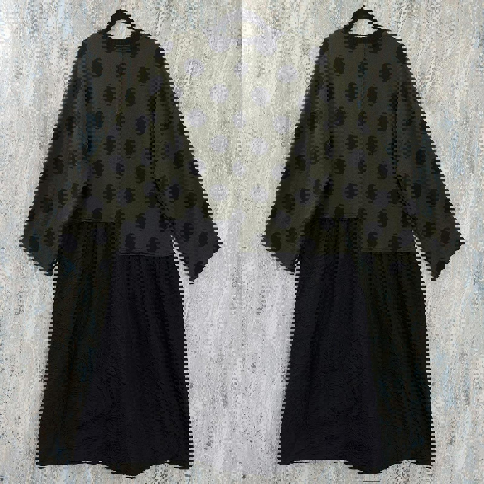 Designer Whimsygoth Dark Green & Black Polka Dot Smock Dress (M)