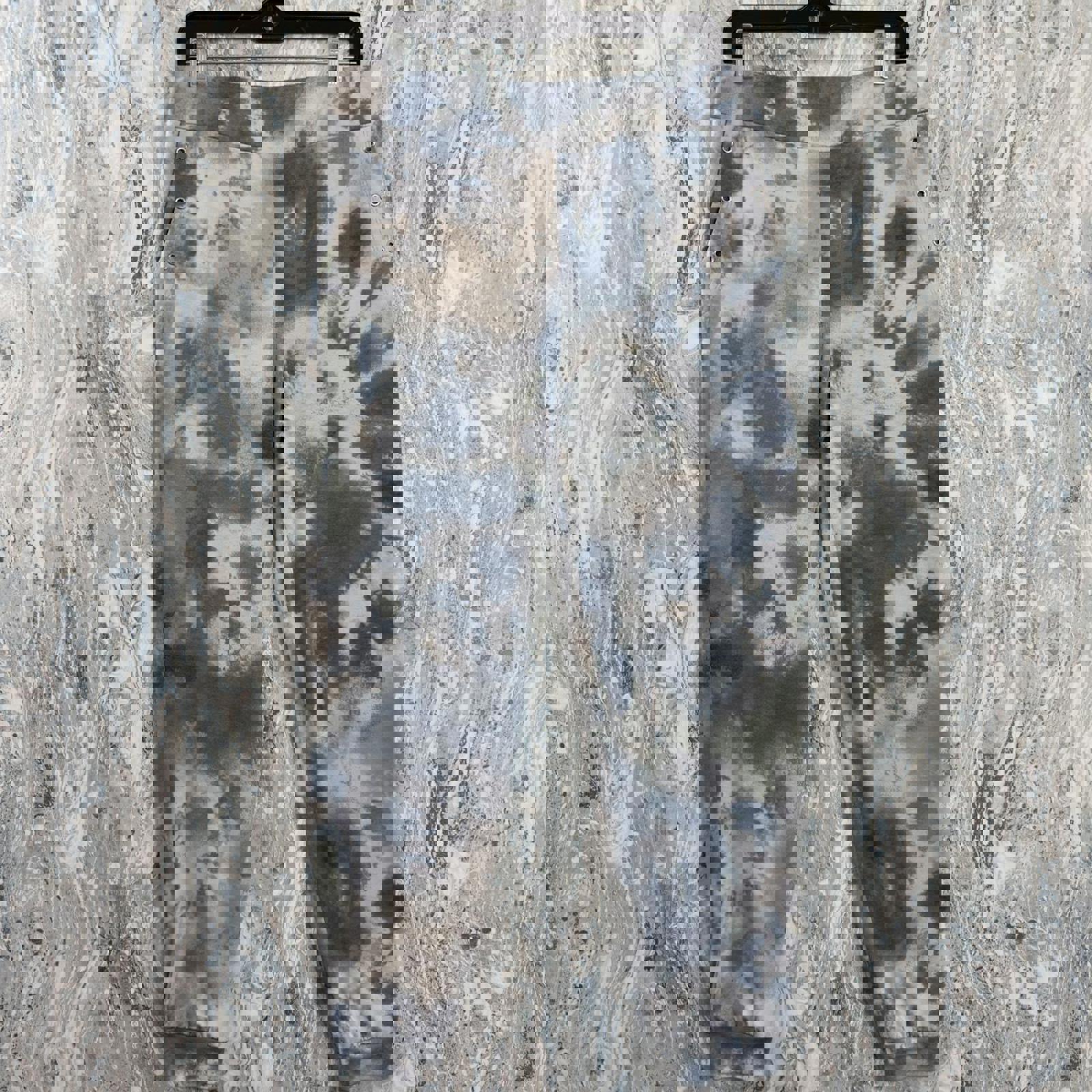 DéVía jogger sweatpants featuring a unique tie-dye pattern in shades of blue, gray, and brown.