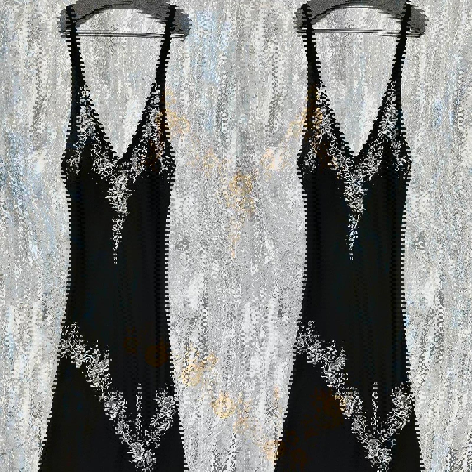 LESLIE FAY Vintage Fairy Black Embroidered V-Neck Dress (10)
