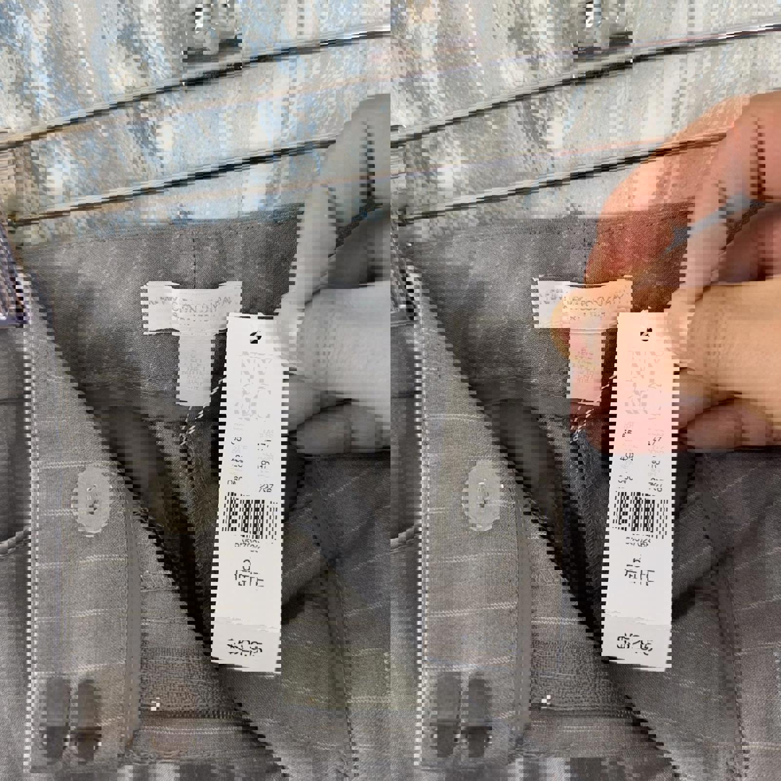 Classic gray pinstripe women's dress pants from New York & Company. Petite size 6. Features a tailored fit with front and back pockets, hook and button closure, and belt loops. Made from a comfortable, professional fabric blend suitable for office or formal wear. New with original tags attached.