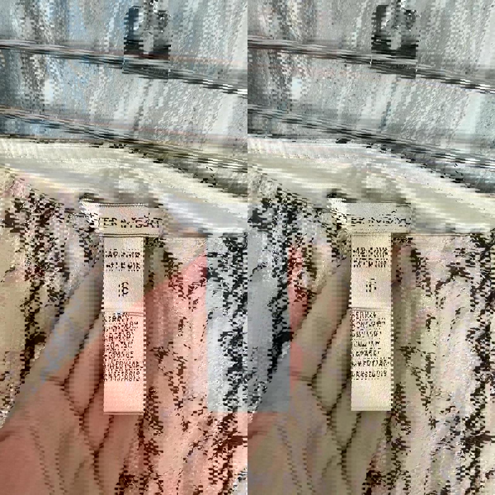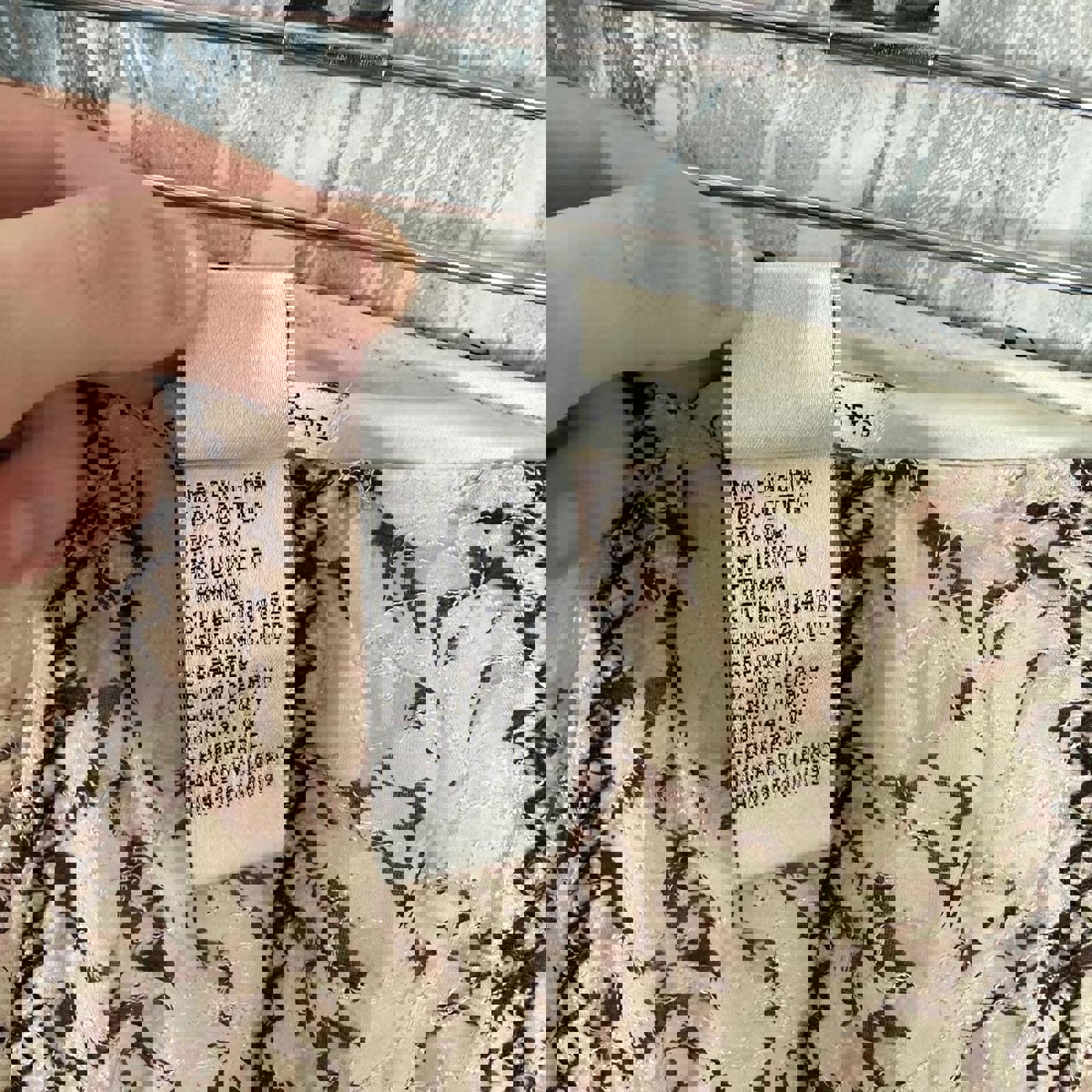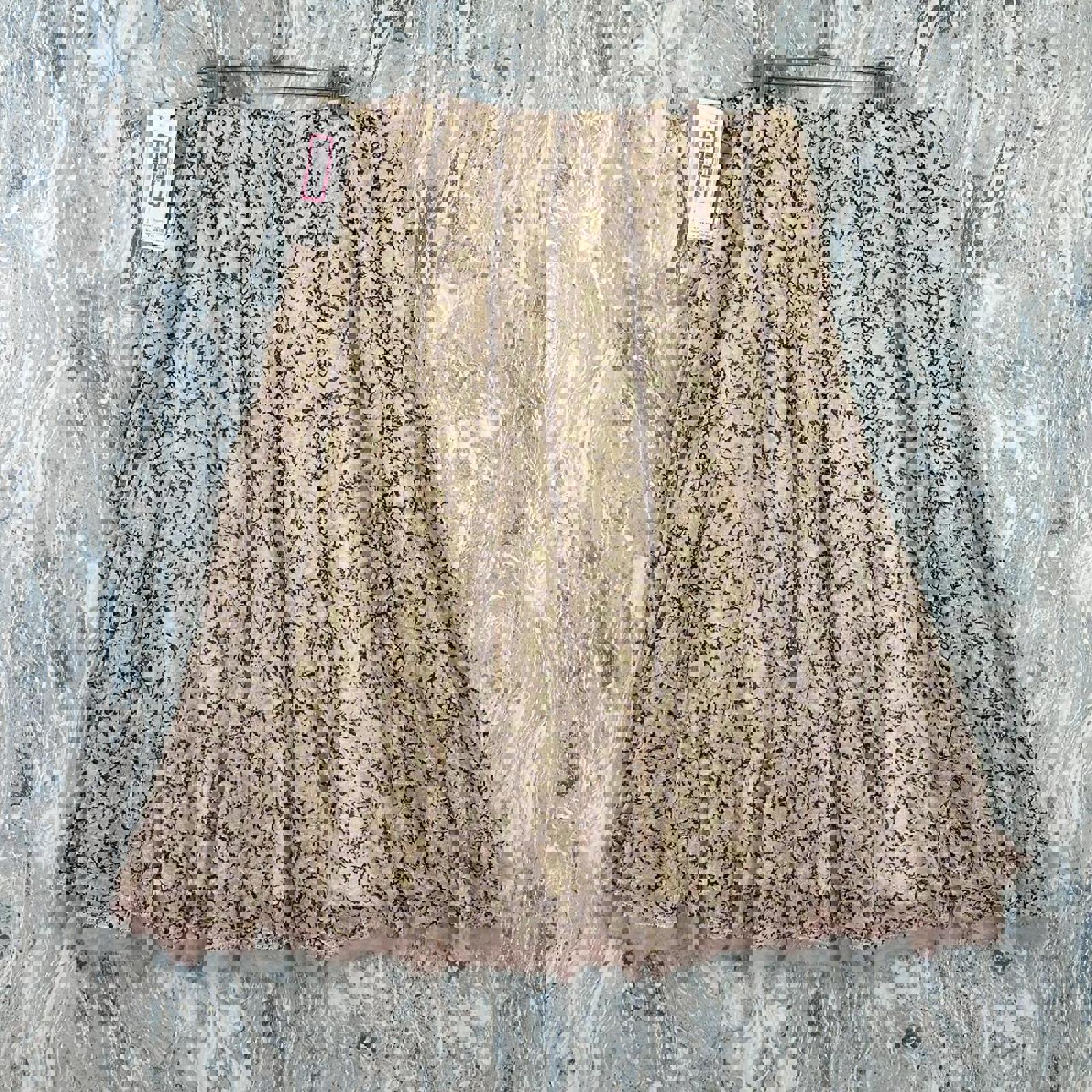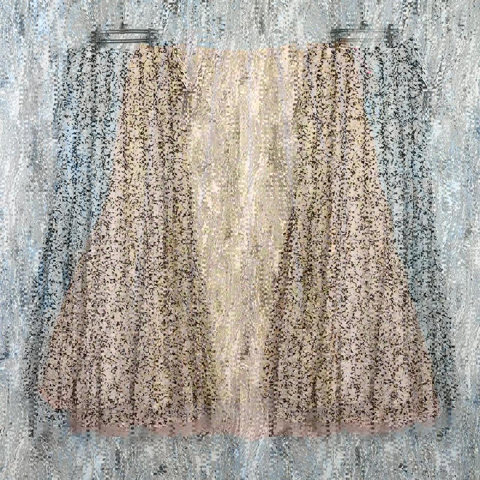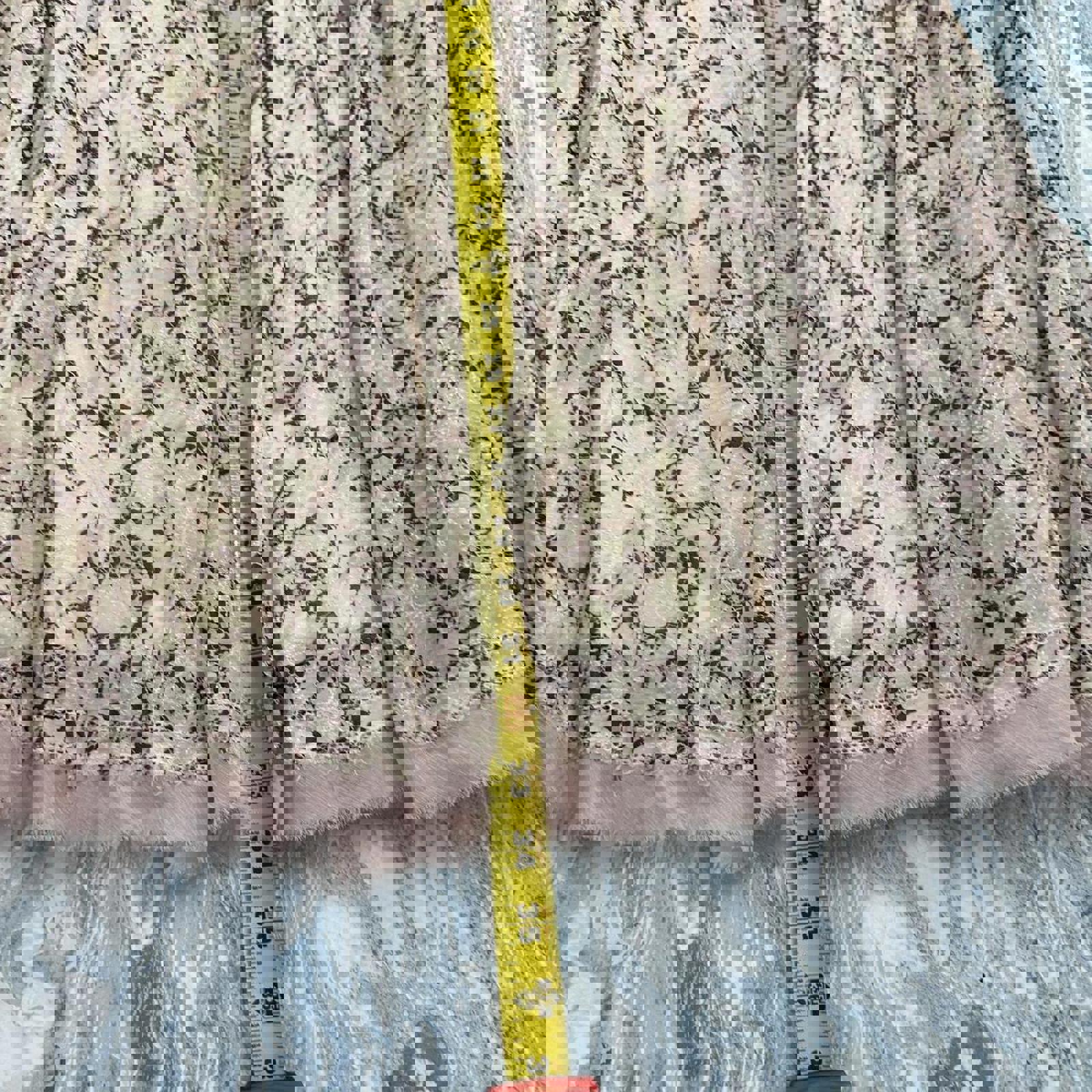 Vintage Peter Nygard midi skirt featuring a delicate floral pattern in soft beige and brown tones.