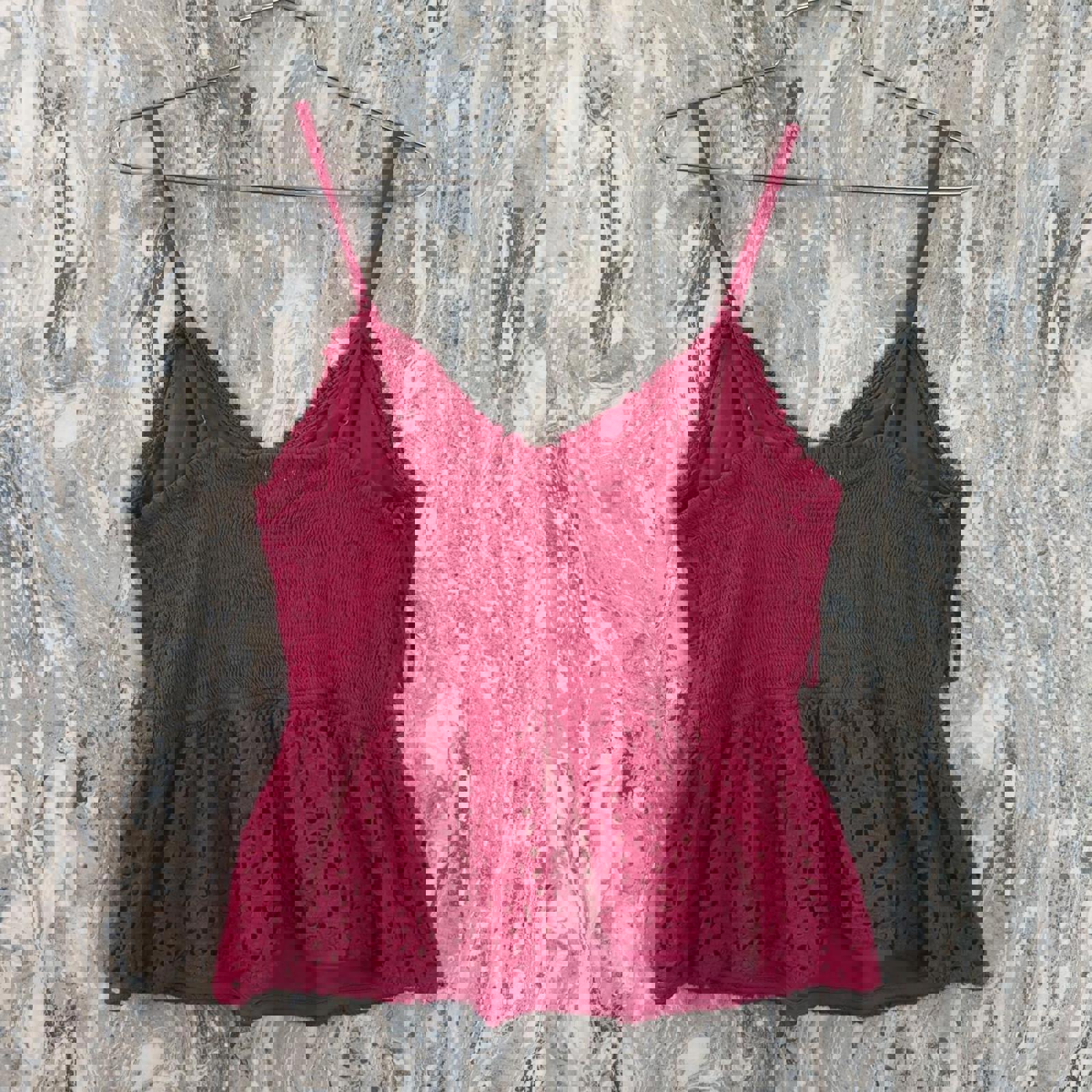Pink Lace Peplum Camisole Tank Top (S/M)