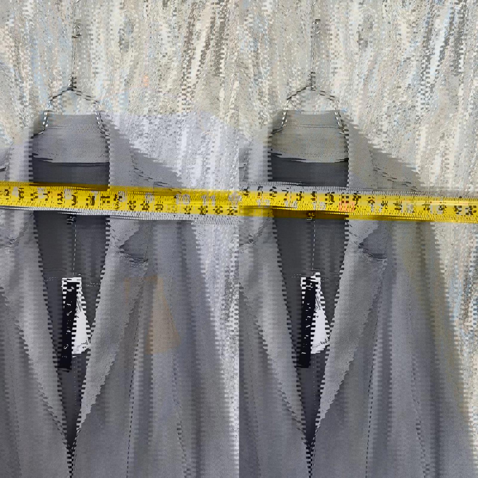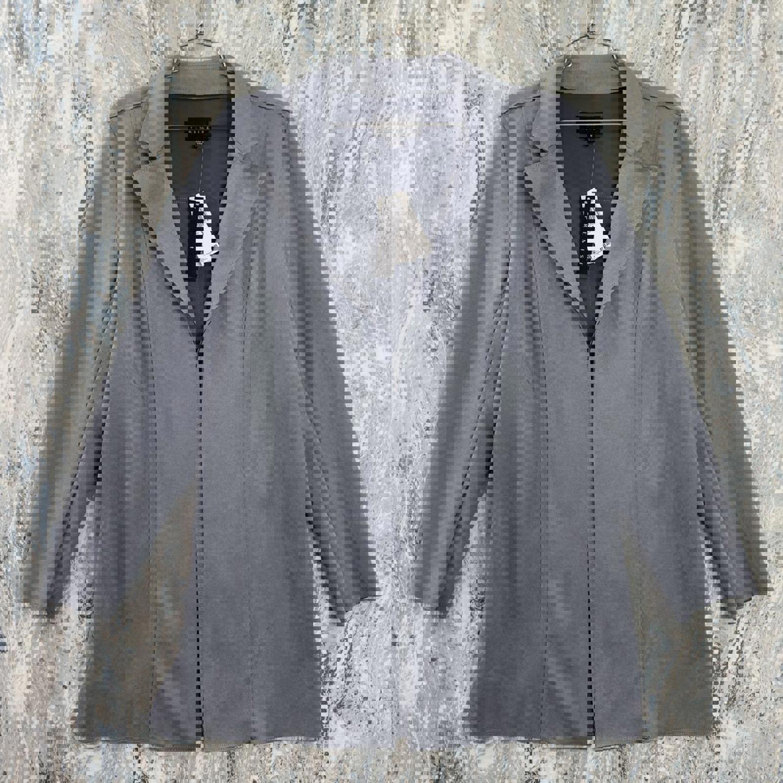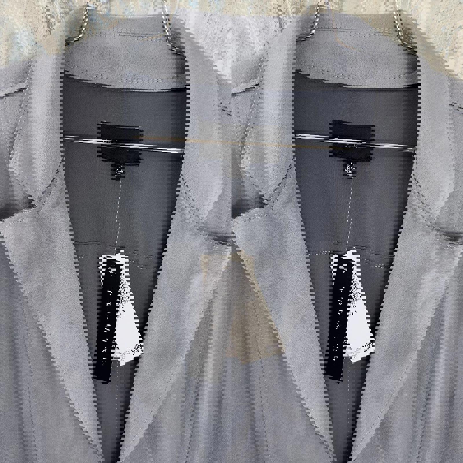 Stylish blue-gray suede long coat with an open front and collar design. BNWT, MSRP $100.