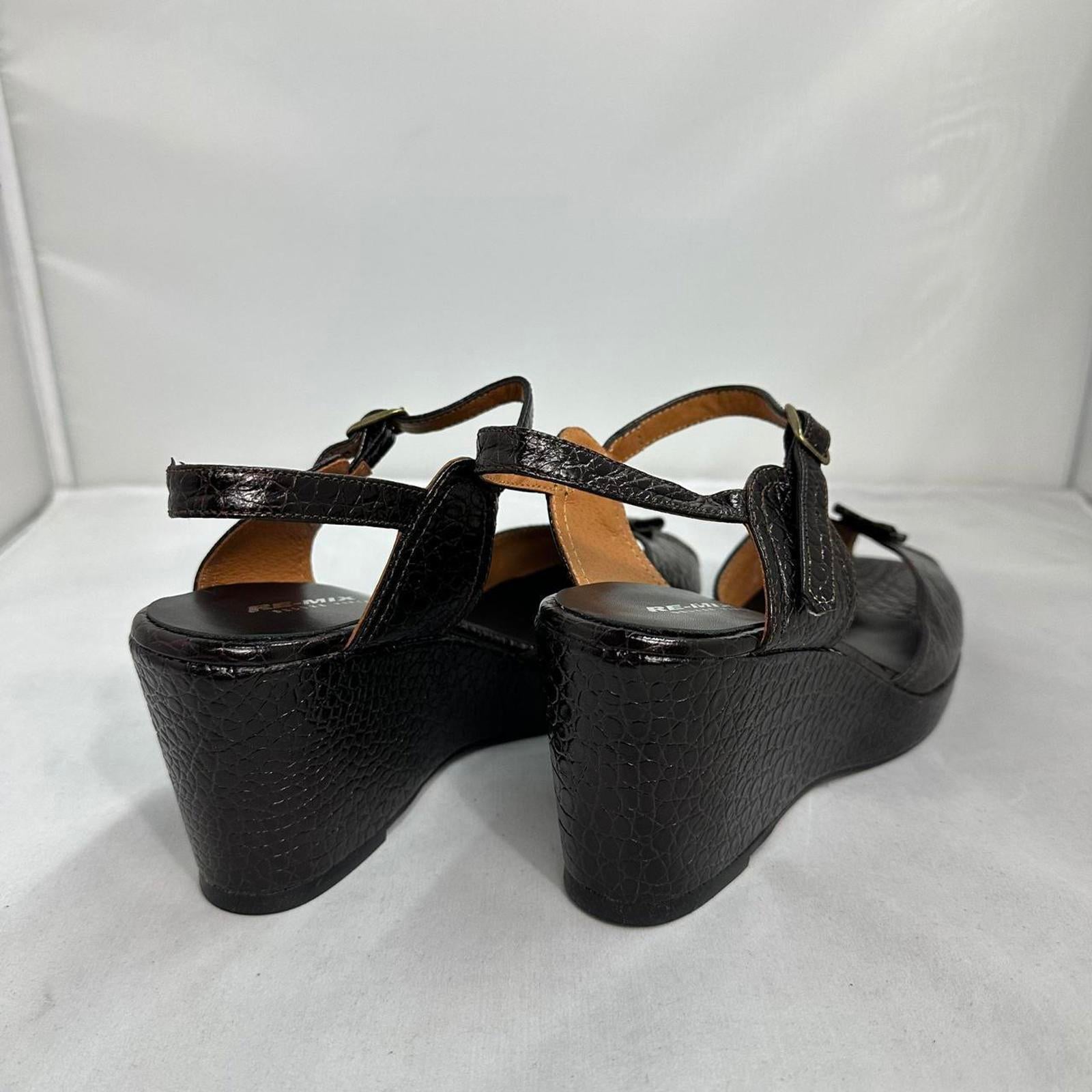 Re-Mix Brown Croc-Embossed Leather Wedge Sandals(10)