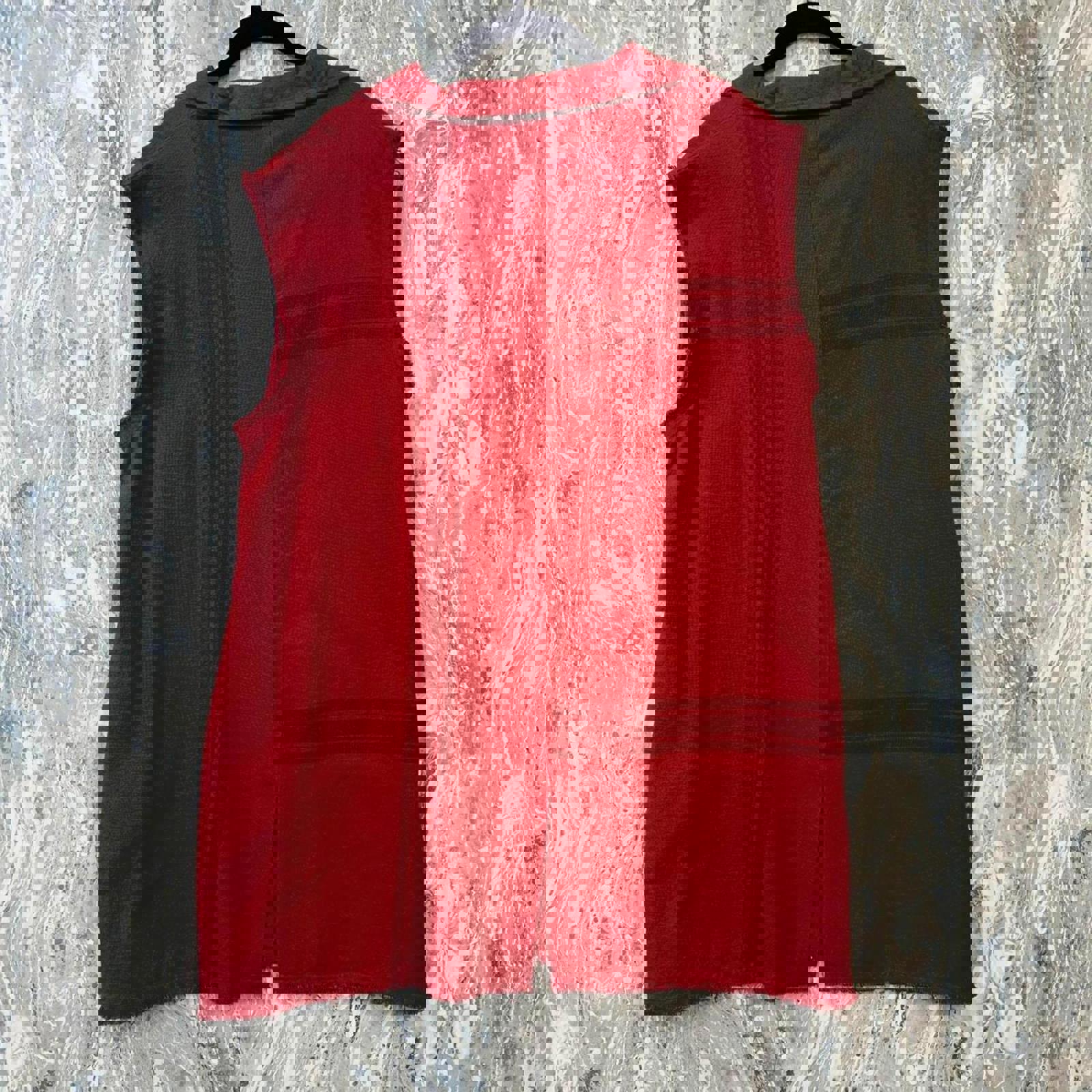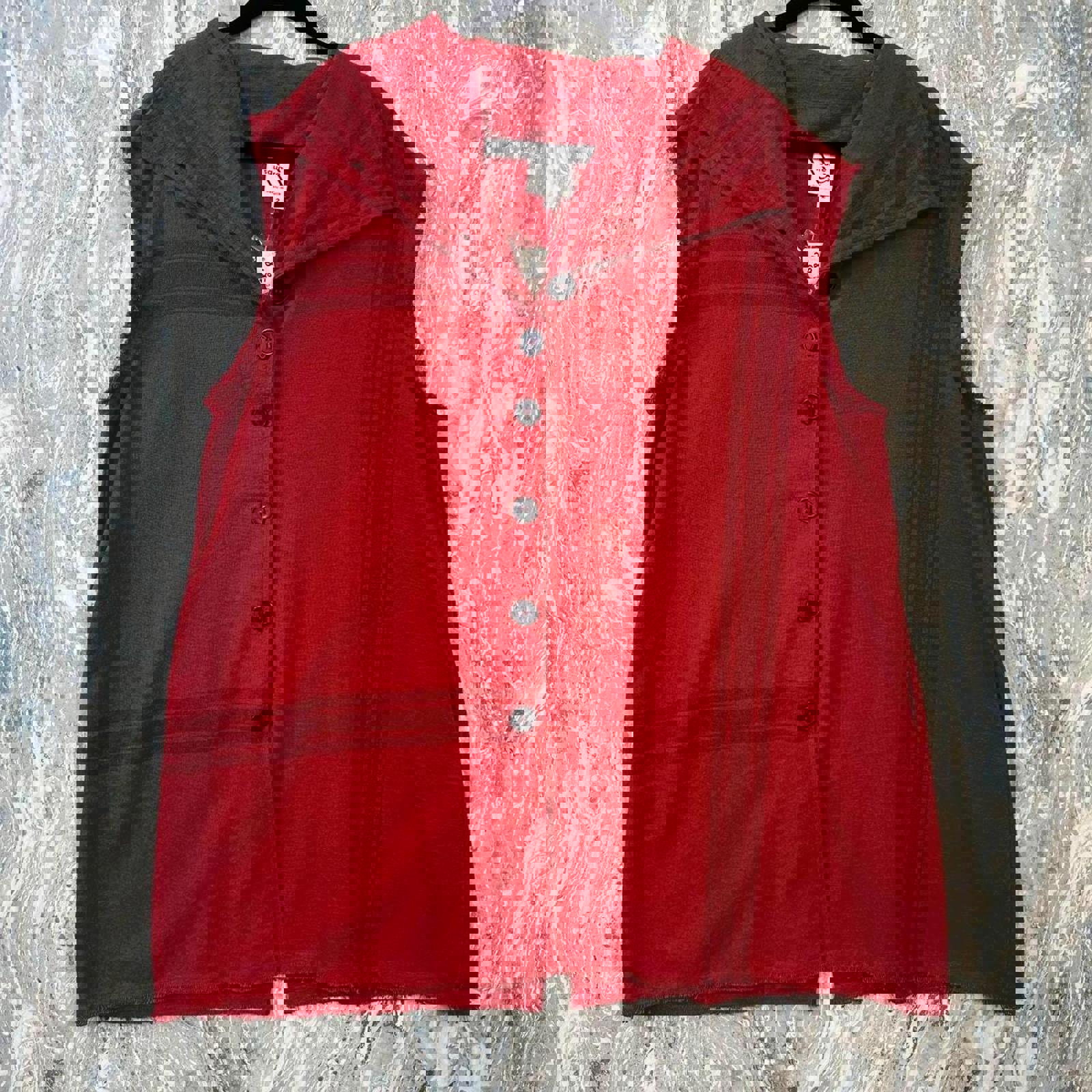 This red vest features a button-up front and a wide collar design. #vest #bohemian #boho #indie #minimalist