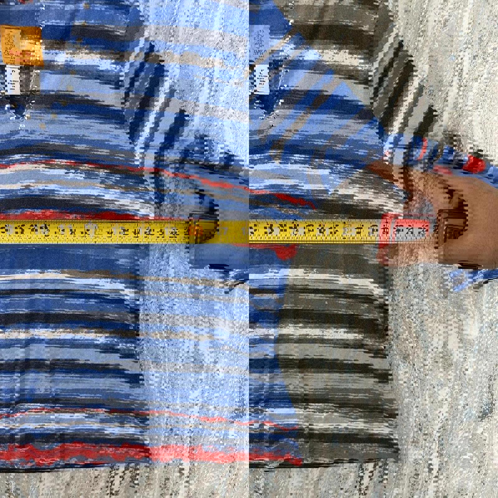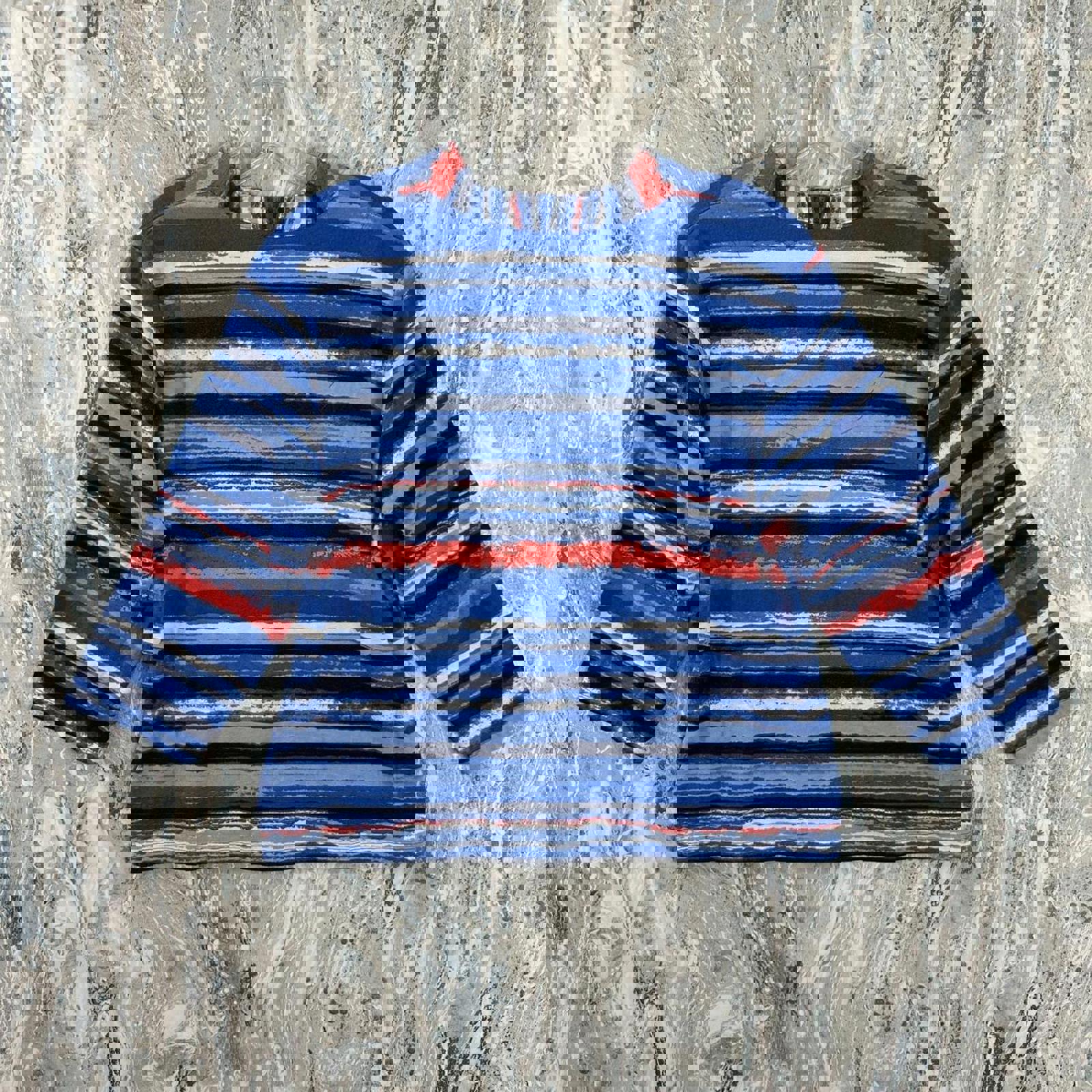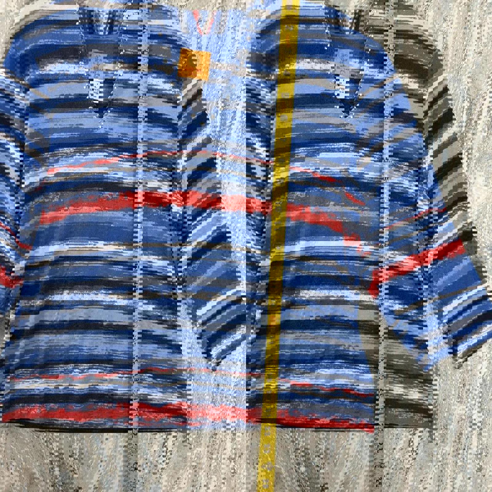 Ruby Rd. Striped Blue Red V-Neck Studded Petite Top (PL)