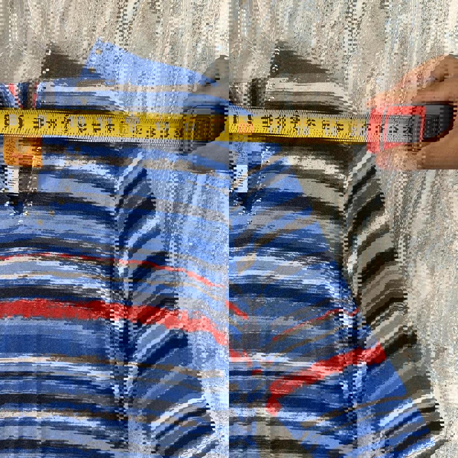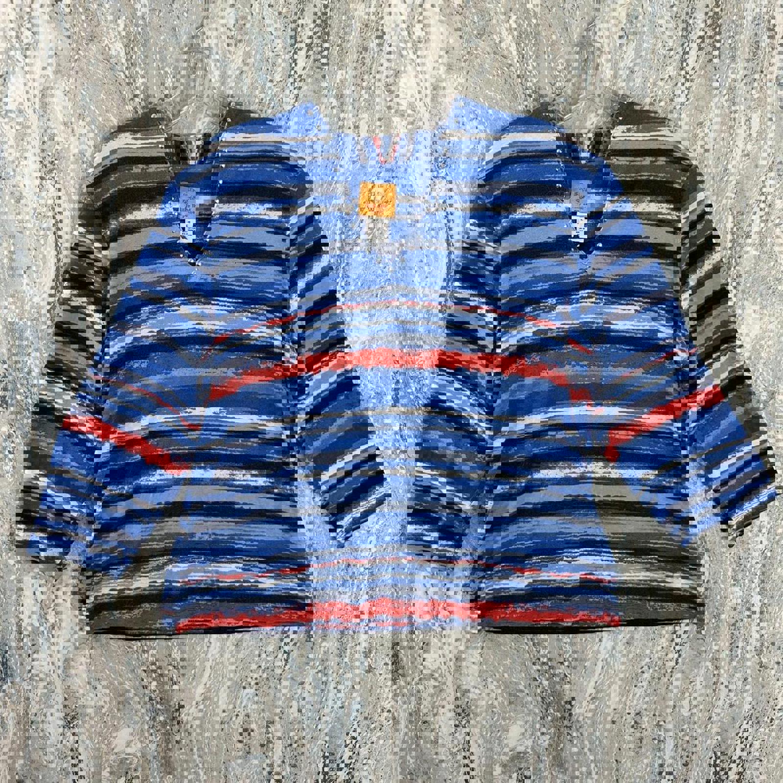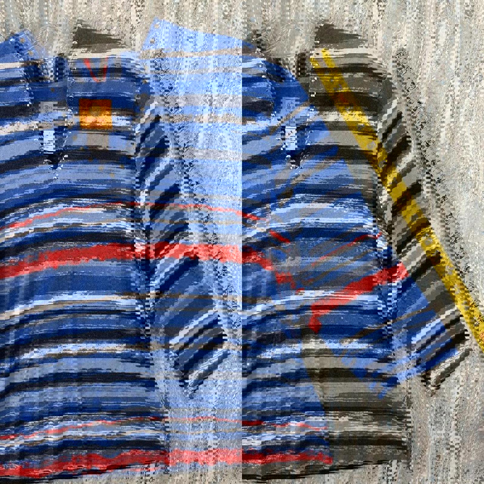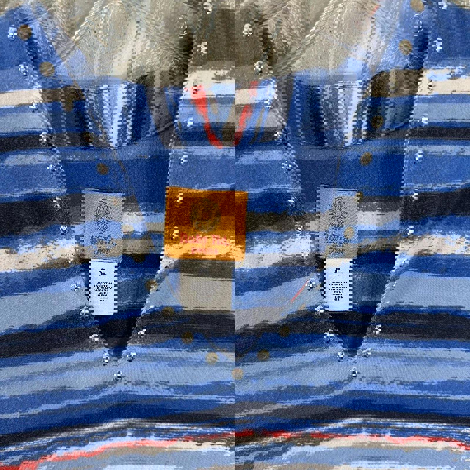 Ruby Rd. Striped Blue Red V-Neck Studded Petite Top (PL)