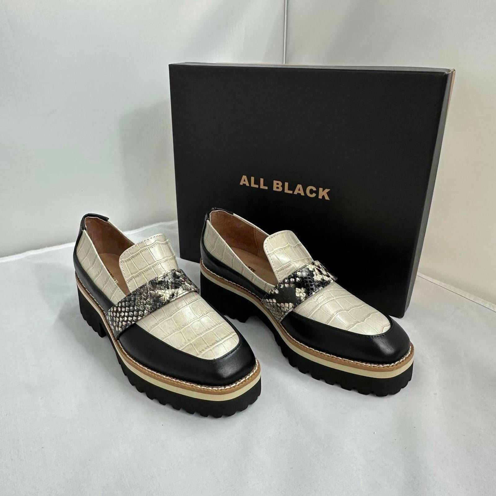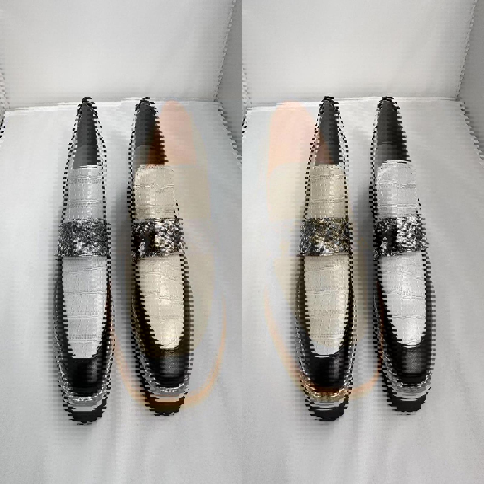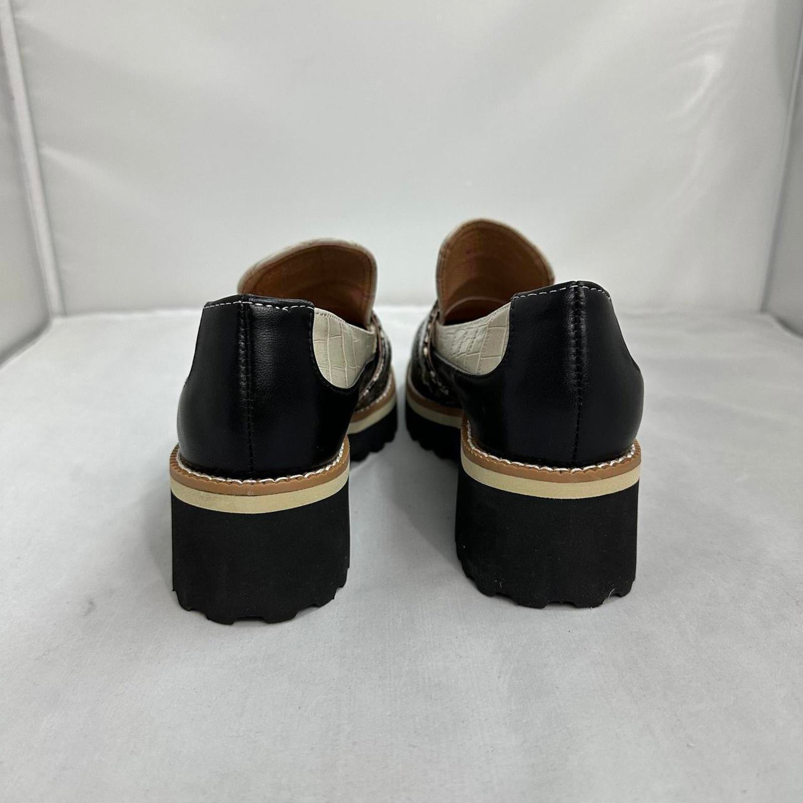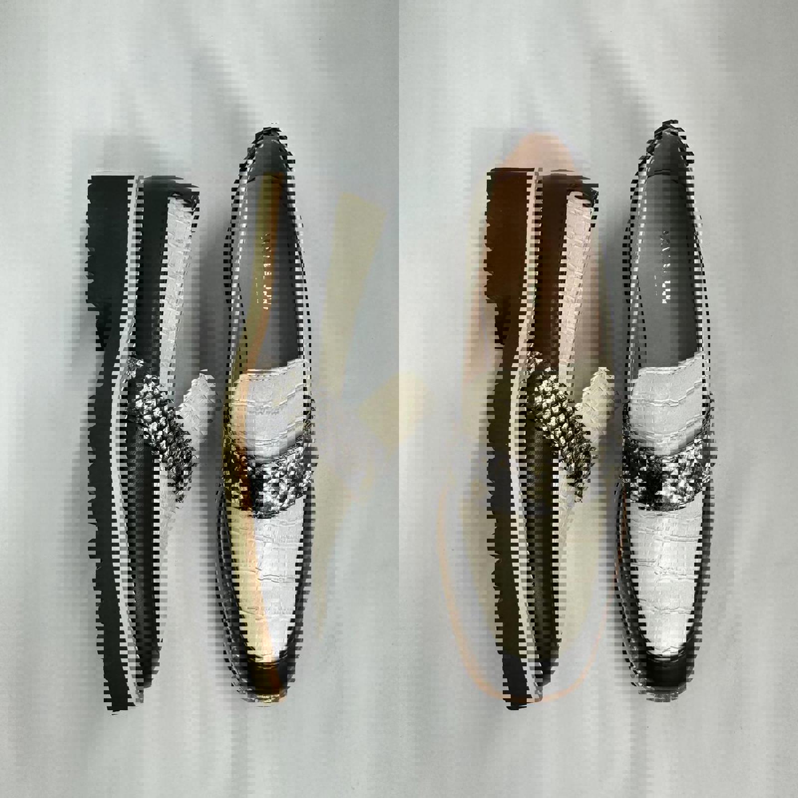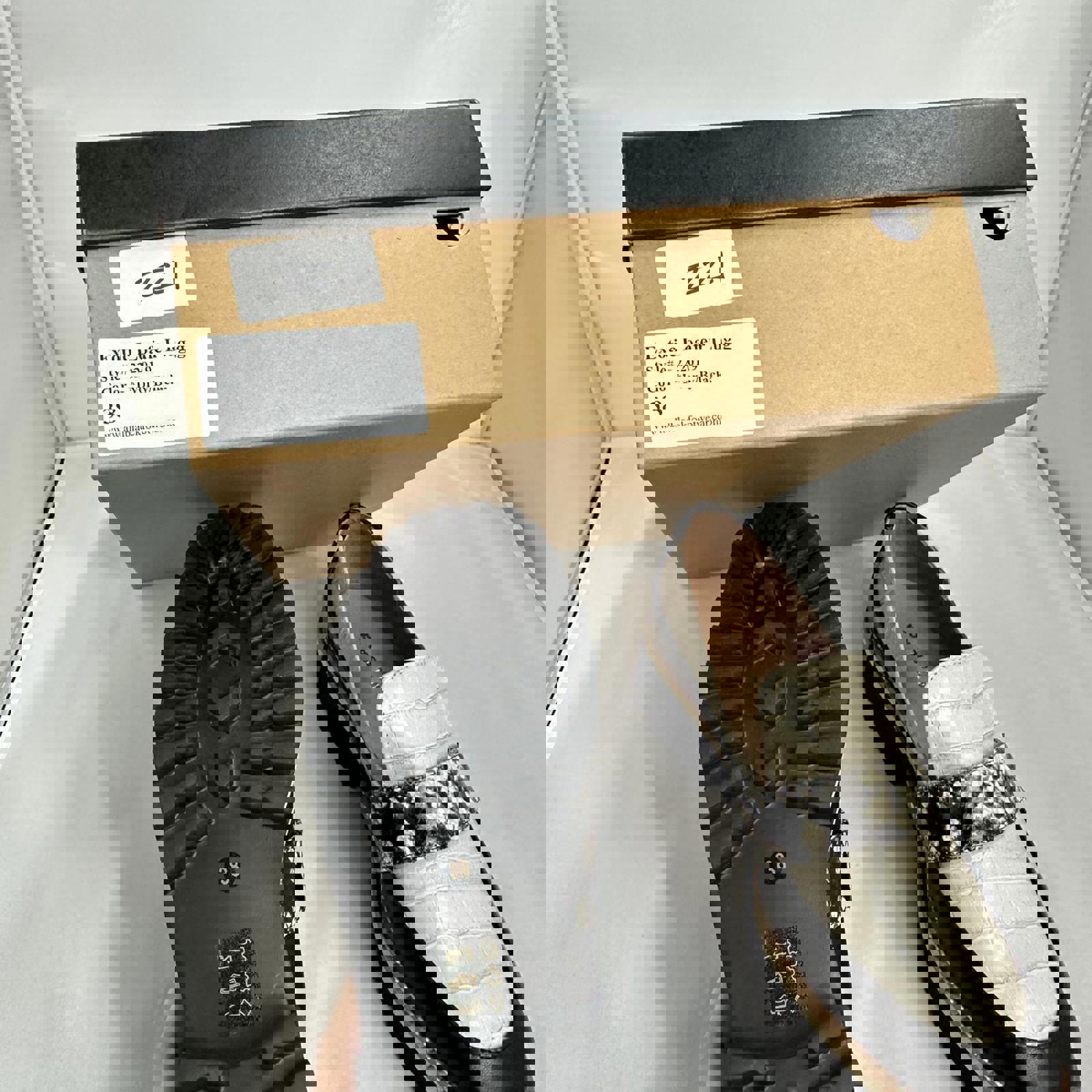 These loafers feature a unique combination of croc embossed texture and snakeskin strap detailing with a chunky sole for added height. Brand New with Box.