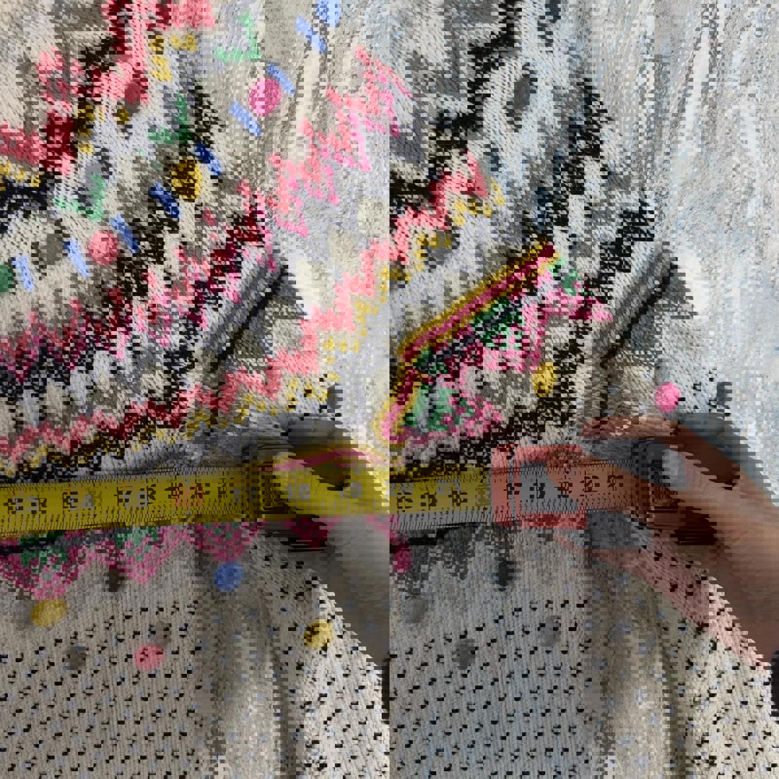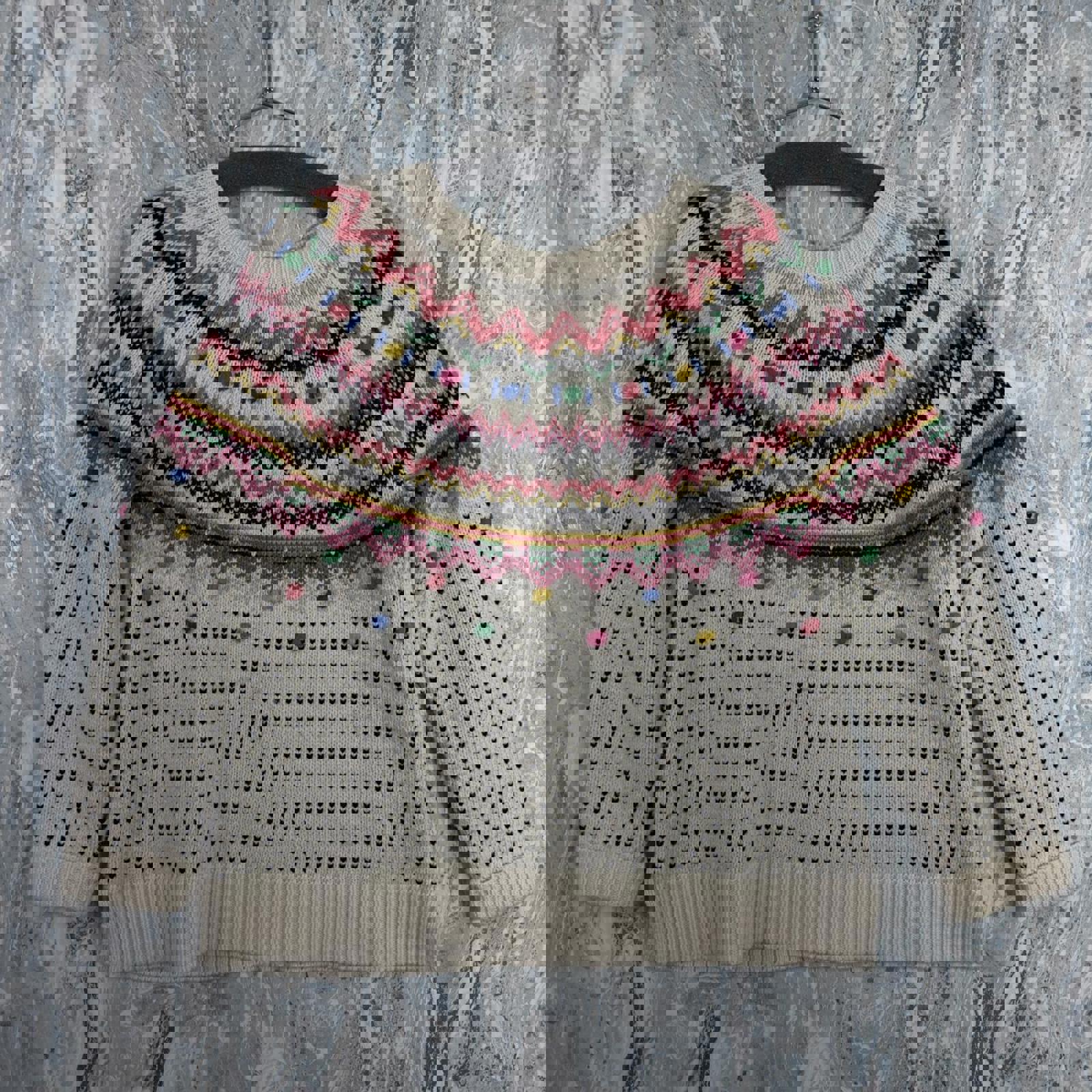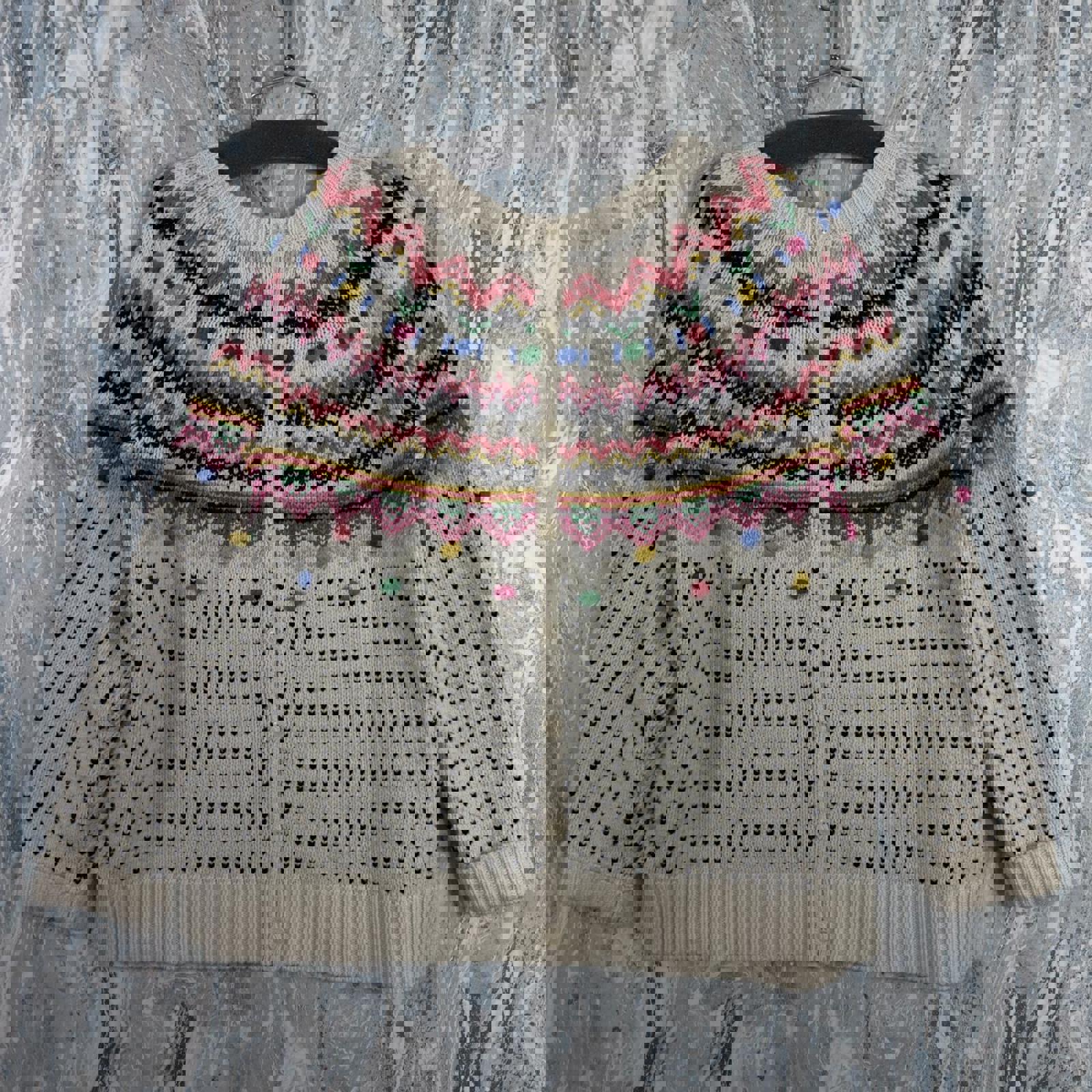 Talbots Colorful Fair Isle Patterned Cream Knit Sweater Cardigan (M)