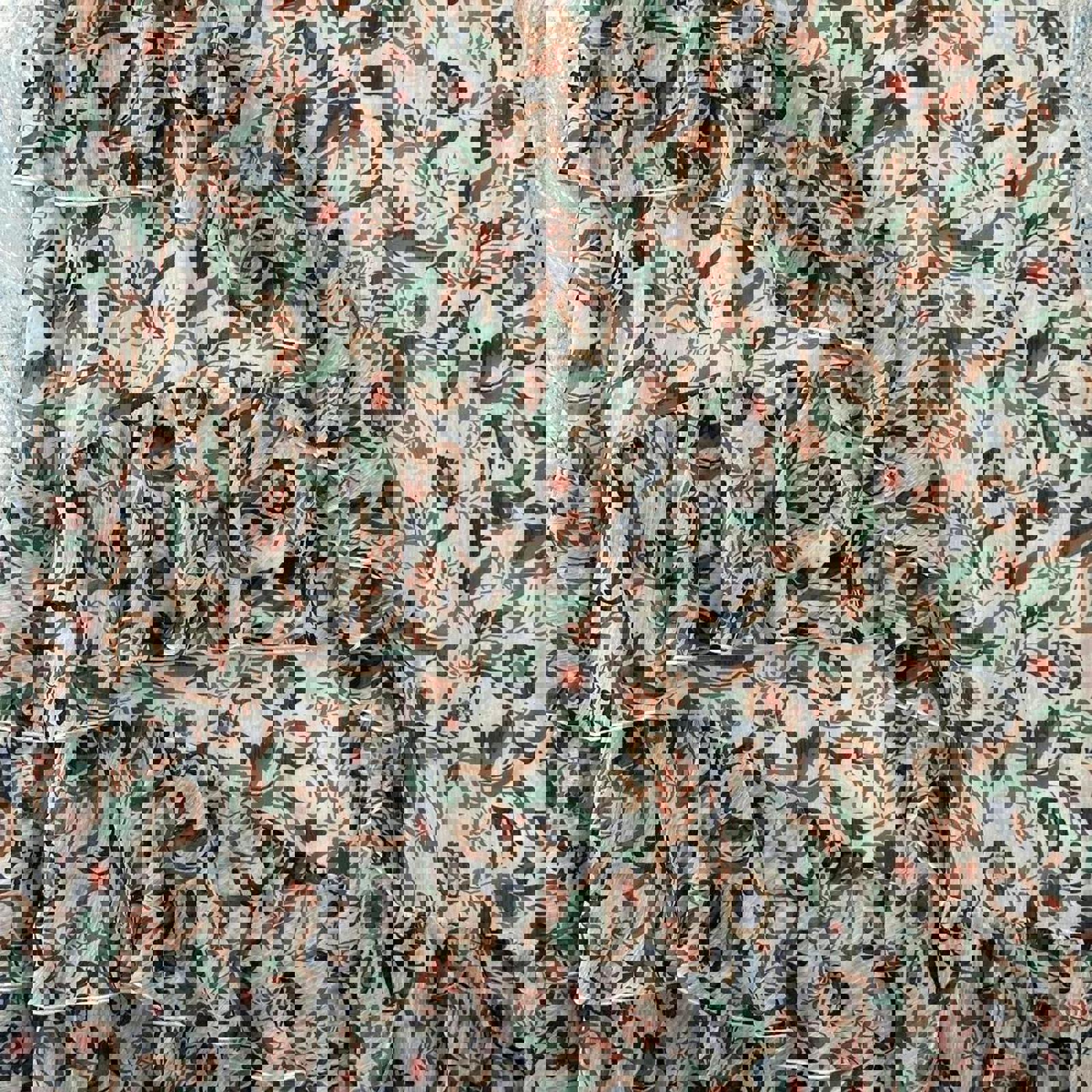 Elegant floral print skirt featuring tiered ruffle details for added texture and movement. Lightweight fabric with a soft drape enhances comfort and style.
