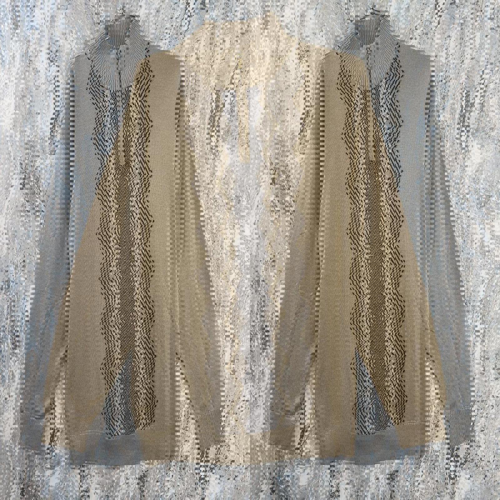 Vintage 90's TRUST Geometric Tan Half-Zip Turtleneck Sweater (L)