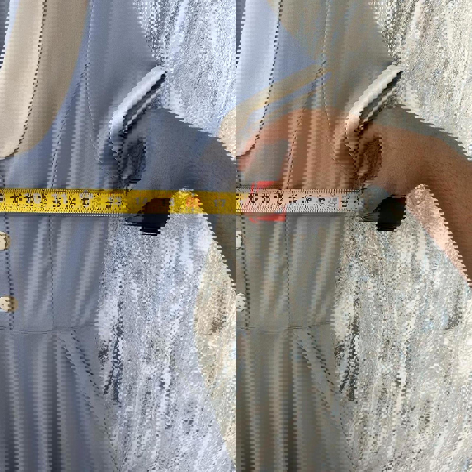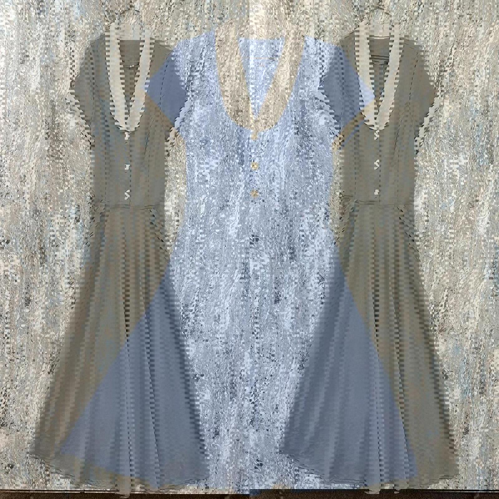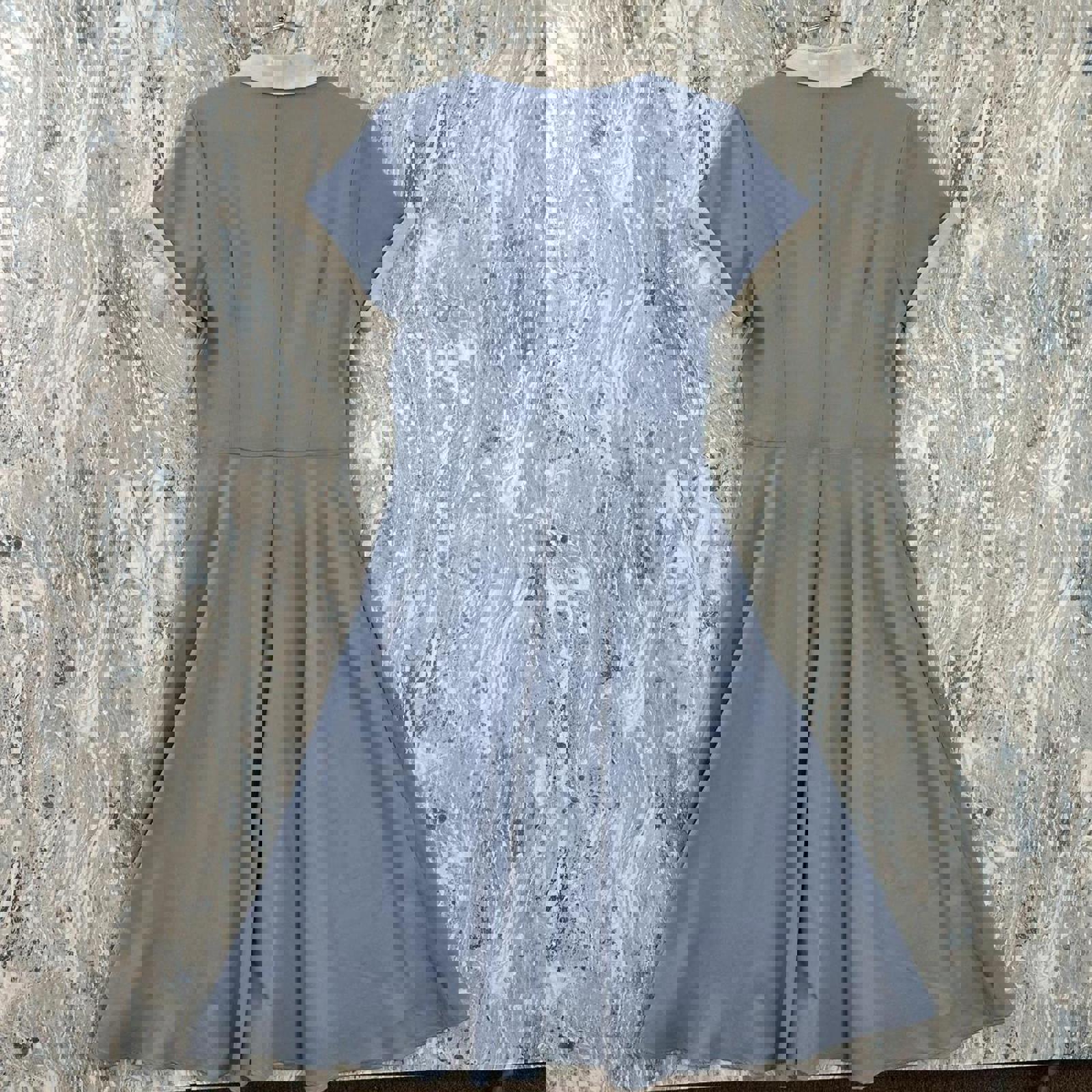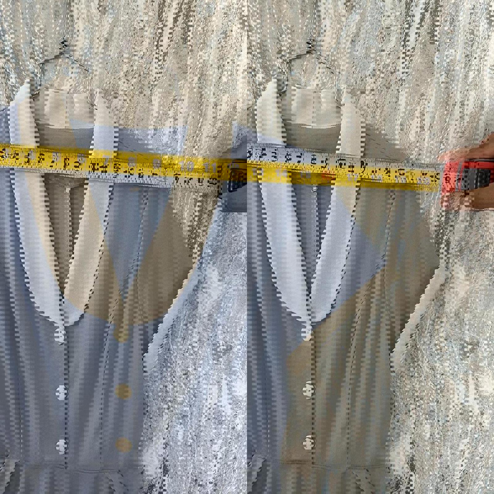Vintage Classic Blue & Cream Midi Dress with Shawl Collar (L)