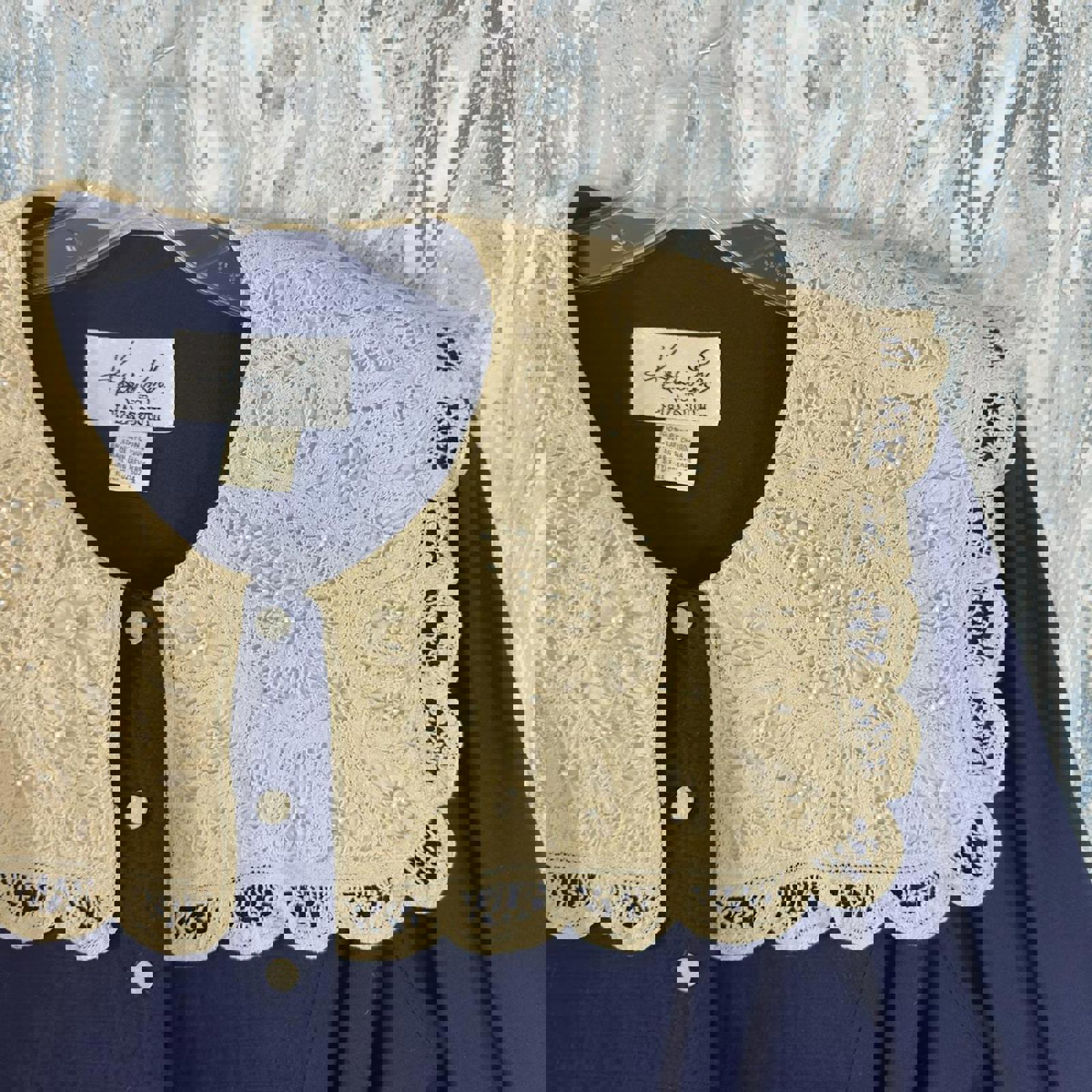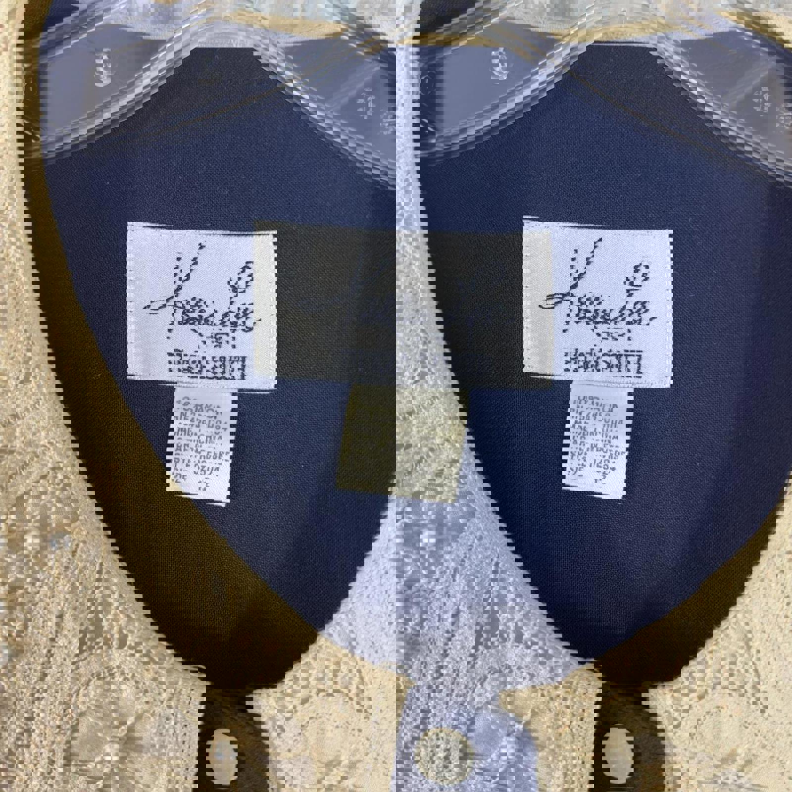 Kathie Lee blue & cream mikmaid buttondown maxidress intricate embroidered details and pearl embellishments women's size 12 in like new condition