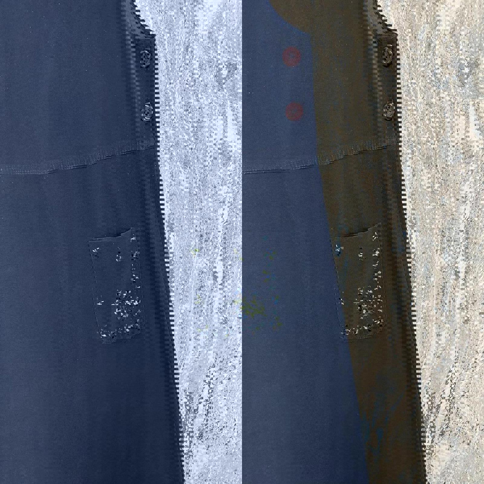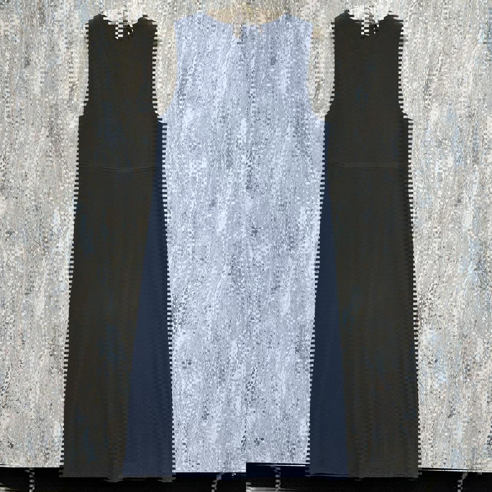 Elegant navy sleeveless maxi dress from Talbots featuring a comfortable stretch fabric for a flattering fit. The dress includes a unique embellished pocket detail adding subtle charm. Size 10 with standard measurements. Made of 95% polyester and 5% spandex.