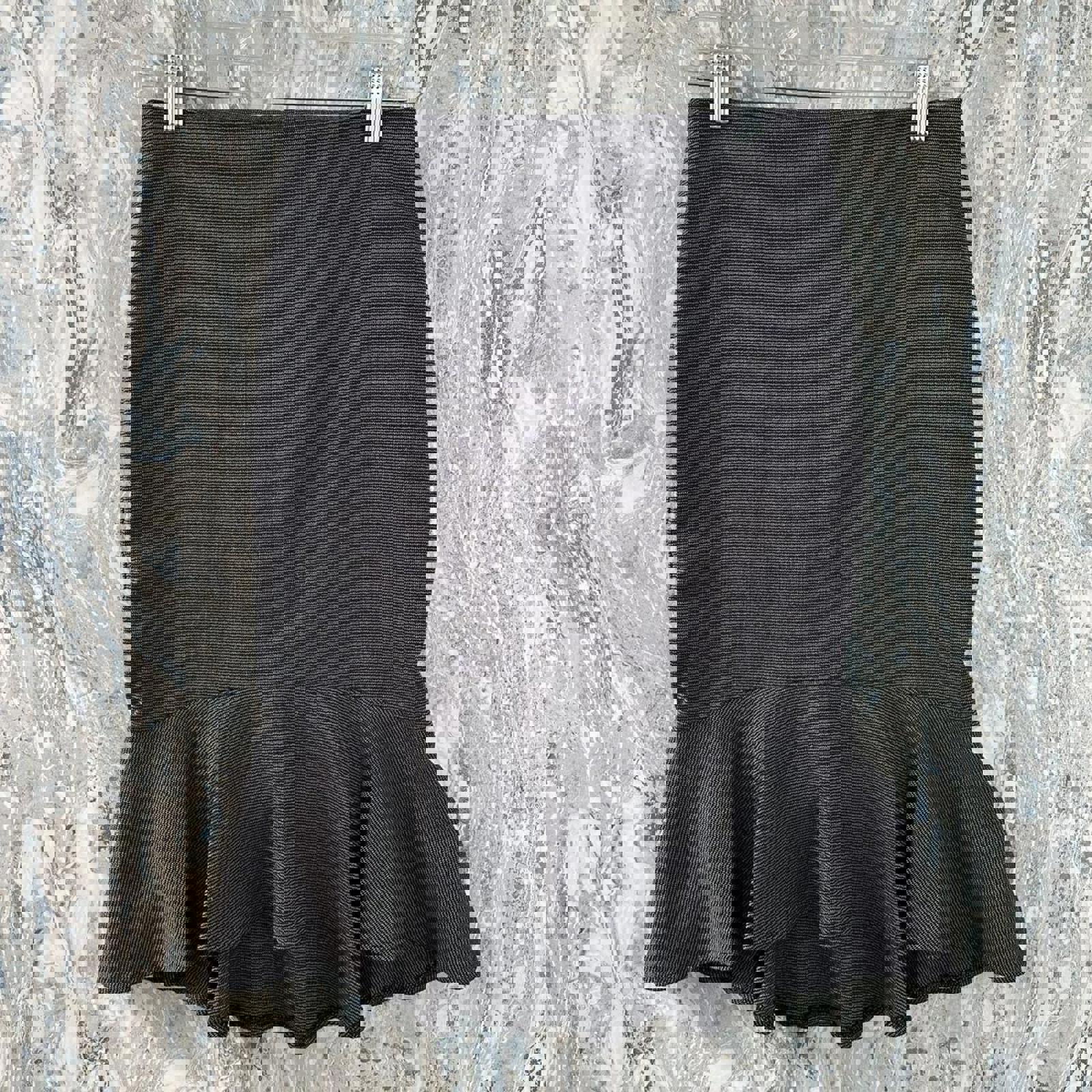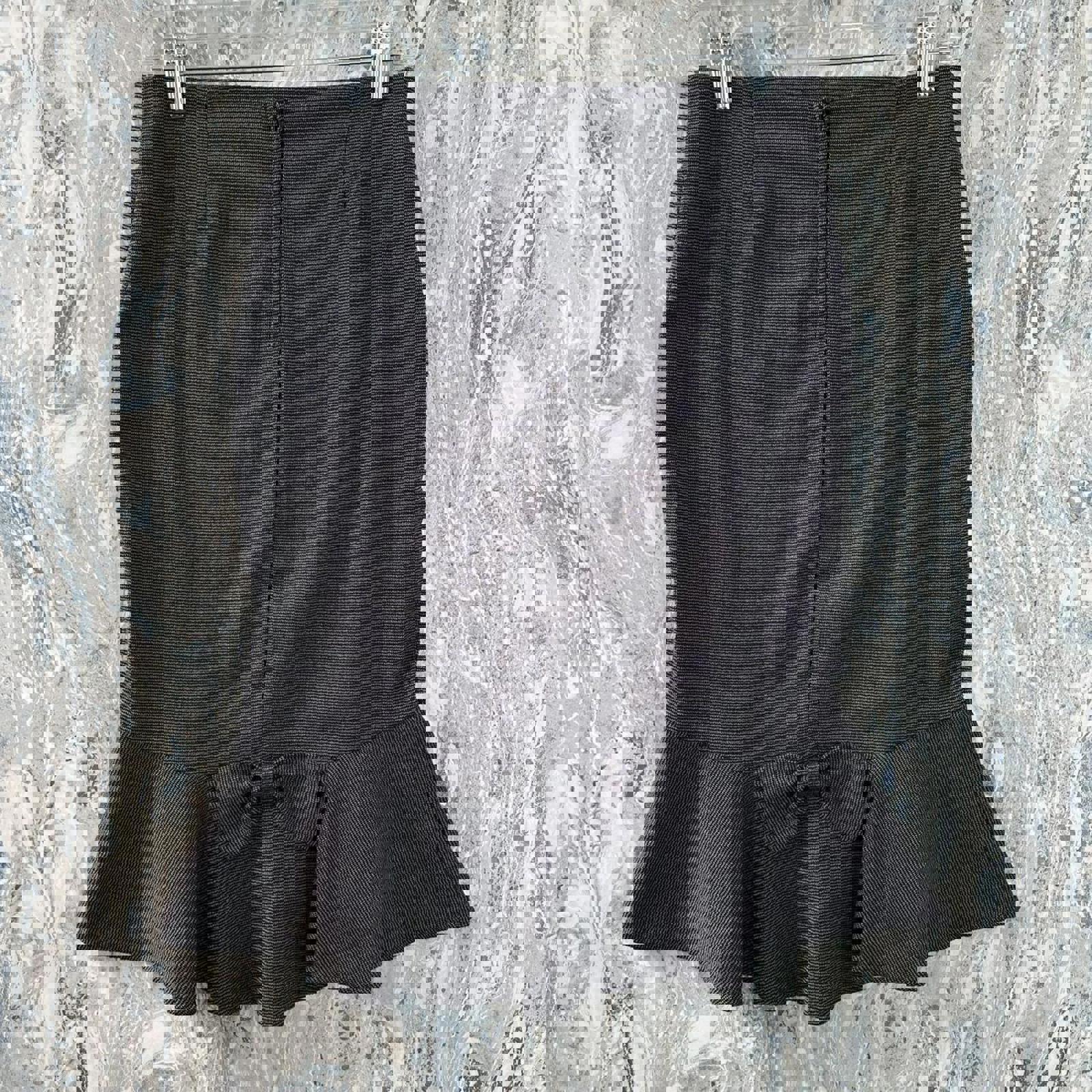 Vintage WAWA Black Charcoal Ruffle Hem Pencil Skirt with Bow Detail (M)