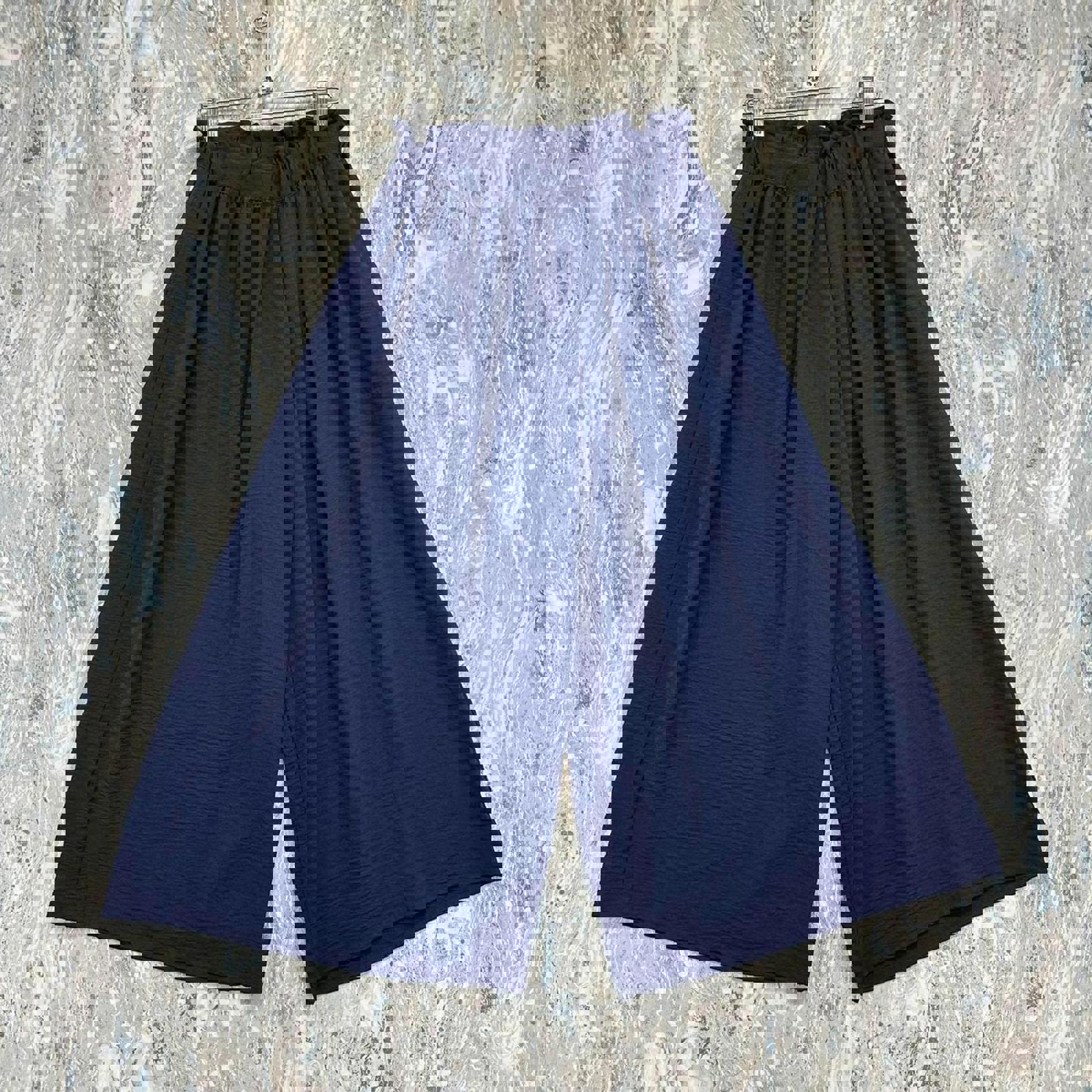 These flowy navy culottes feature a high-waisted fit with a ruffled elastic waistband and a textured fabric finish. #lazylux #indie #boho #minimalist #casual