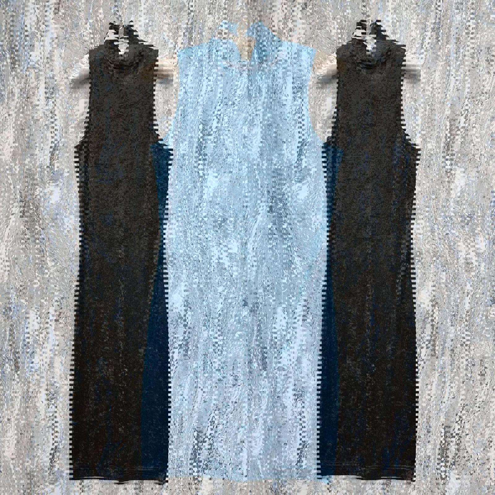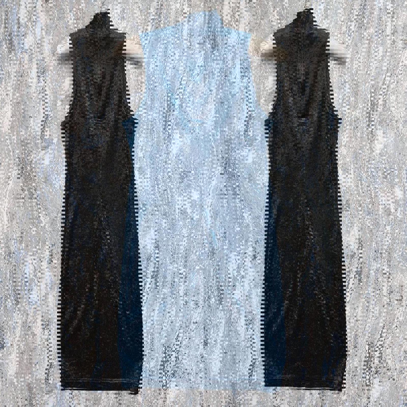 ZANONI vintage velvet dress in a rich dark teal color featuring a high neck and sleeveless design. Size S. Made from 100% cotton for comfort and breathability. This dress is in good condition with minimal signs of wear.